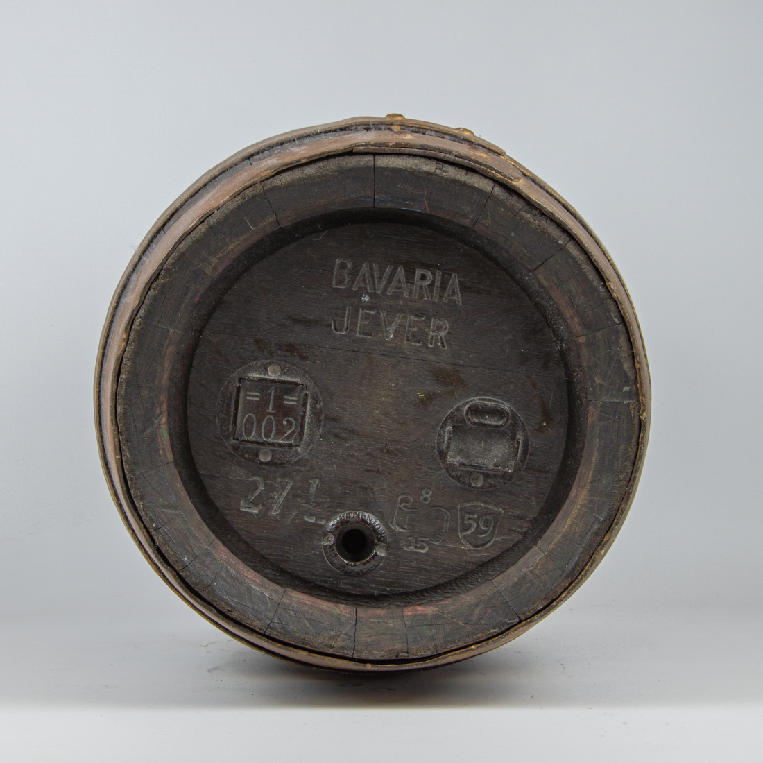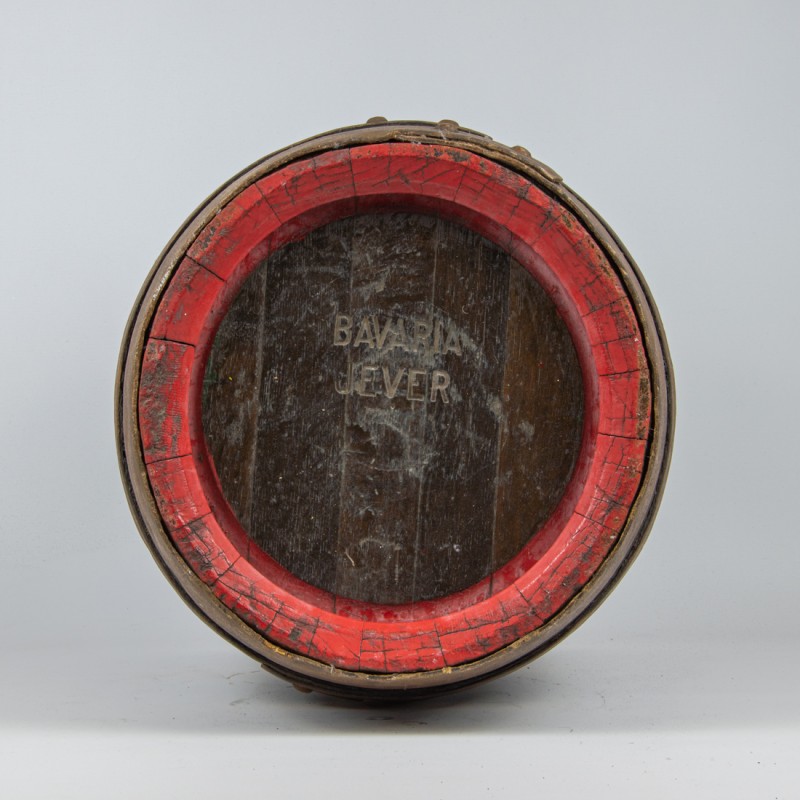 Die etwas ungeraden Inhalte der Holzfässer kamen dadurch zustande, dass die Fässer nach der Herstellung durch den Böttcher von innen mit Pech beschichtet wurden, damit sie dicht sind. Dies war nicht so genau zu steuern, sodass der Inhalt eines jeden Fasses einzeln festgestellt und am Fass notiert werden musste. Auf der Unterseite ist noch die typische rote Bavaria-Farbe zu sehen. Möglicherweise wurde das Fass später in einen “gängigen” Farbton (braun) umgestrichen.