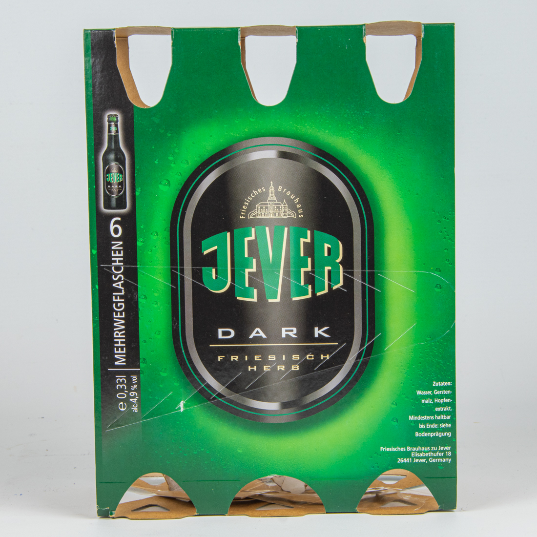 6 MEHRWEGFLASCHEN / e 0,33l alc. 4,9% vol / Friesisches Brauhaus / JEVER / DARK / FRIESISCH HERB / Zutaten: Wasser, Gerstenmalz, Hopfenextrakt. Mindestens haltbar bis Ende: siehe Bodenprägung / Friesisches Brauhaus zu Jever Elisabethufer 18 26441 Jever, Germany