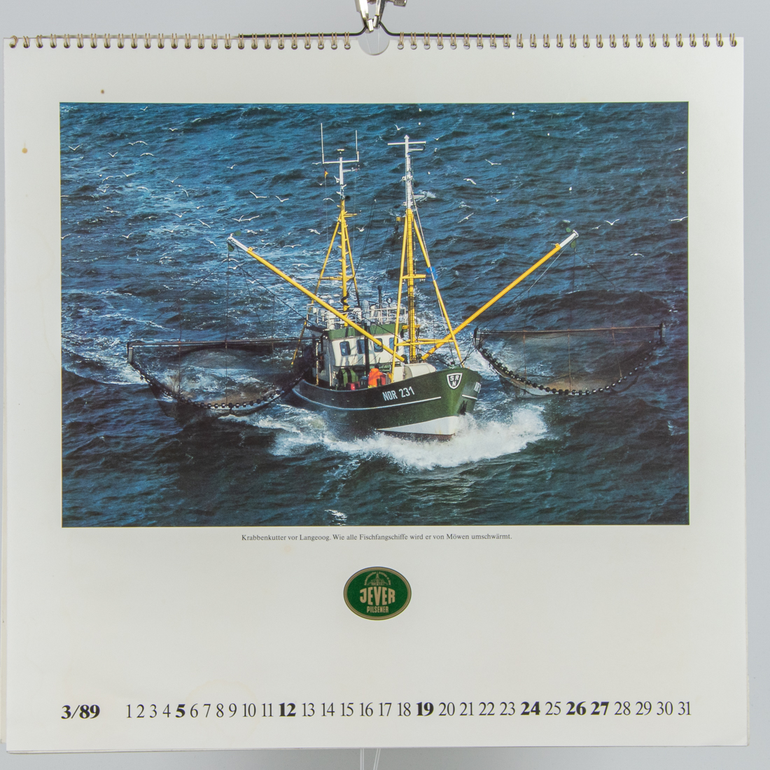 Krabbenkutter vor Langeoog. Wie alle Fischfangschiffe wird er von Möwen umschwärmt. / Aus dem Friesischen Brauhaus zu Jever / JEVER / PILSENER