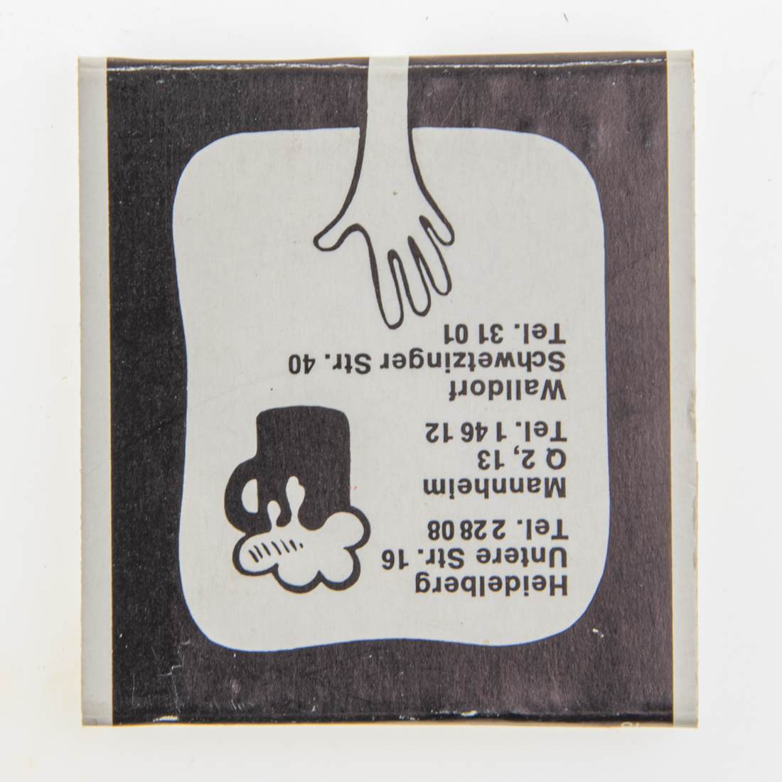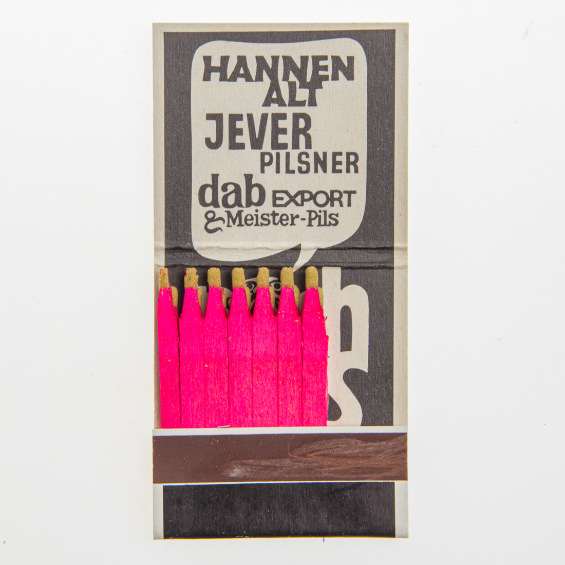 Attribut Wert Alter (min.) Alter (max.) Identifikation (Jever-Fan) ID I003888 / S1401 / B53 Typ Streichhölzer Attribute (Allgemein) Form Quader Gastronomie Destille Maße HxBxT (cm) 5,3x5,0x0,2 Material Papier/Pappe Ort Walldorf > Walldorf > Rhein-Neckar-Kreis > Baden-Württemberg > Deutschland Sorte Pilsener