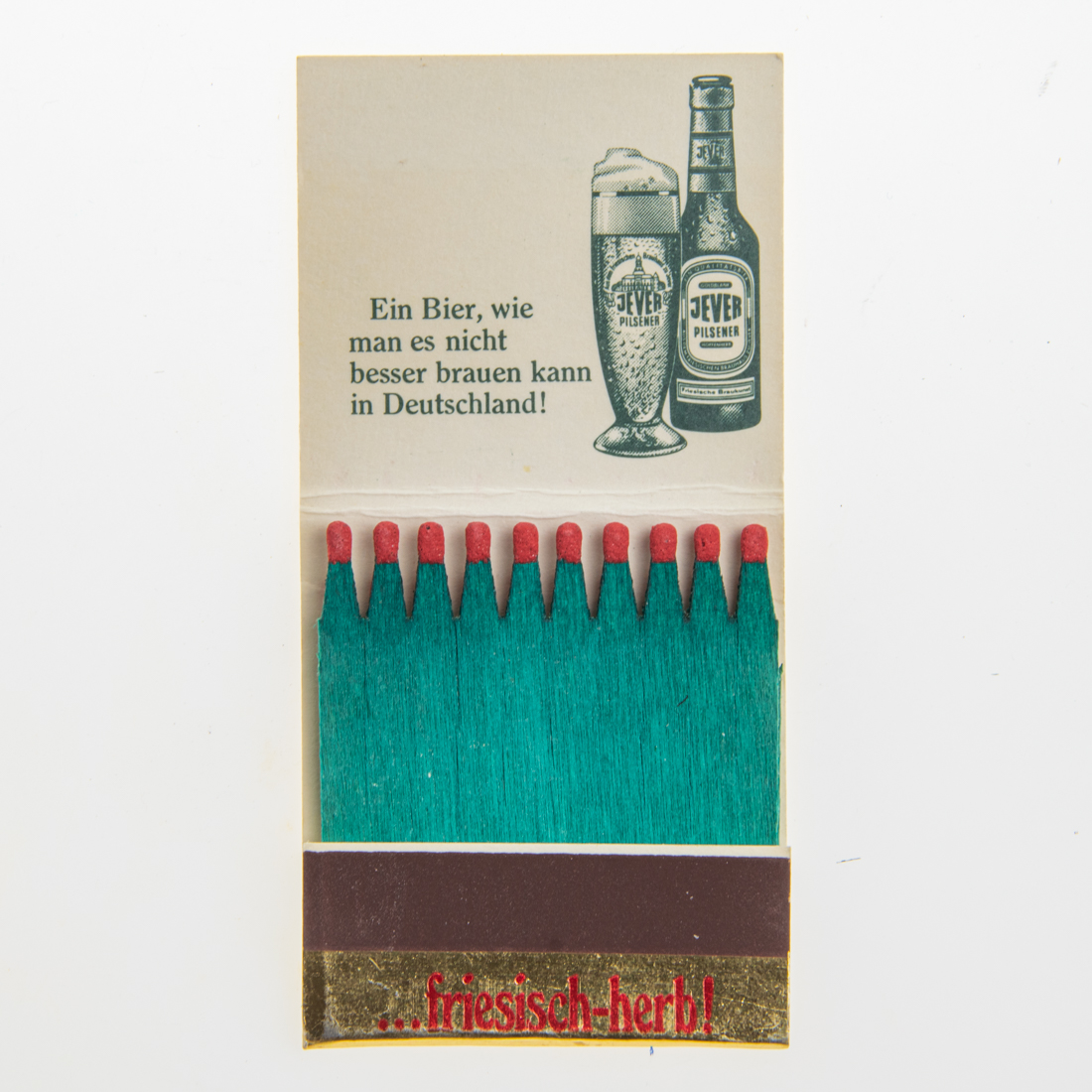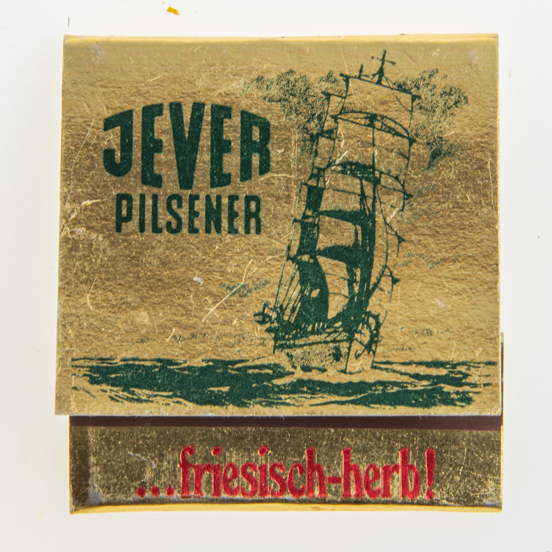 Attribut Wert Alter (min.) Alter (max.) Identifikation (Jever-Fan) ID I003897 / S1410 / B53 Typ Streichhölzer Attribute (Allgemein) Form Quader Logo Pilsener 2 Logo Pilsener 22 Maße HxBxT (cm) 5,5x5,0x0,3 Material Papier/Pappe Motiv Rundliche Schrift Slogan Ein Bier wie man es besser nicht brauen kann in Deutschland Slogan Friesisch herb Slogan Friesische Braukunst Slogan Goldblank Hopfenherb Sorte Pilsener