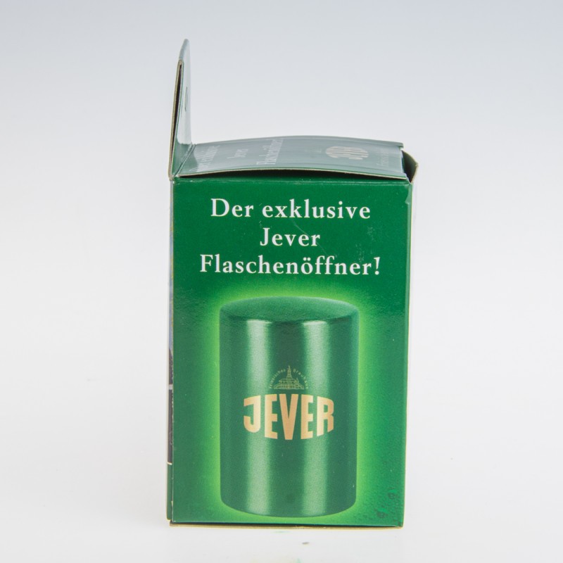 Wie das Land, so das Jever. / Friesisches Brauhaus / JEVER / Friesisch-herb. / Der exklusive Jever Flaschenöffner! / www.jever.de / 1. Den Flaschenöffner mit der Öffnung nach unten auf die Flasche aufsetzen. / 2. Den Flaschenöffner nach unten drücken. / 3. Durch eine leichte Kippbewegung den den Flaschenöffner mit dem Kronenkorken abnehmen. Fertig - die Flasche ist geöffnet!