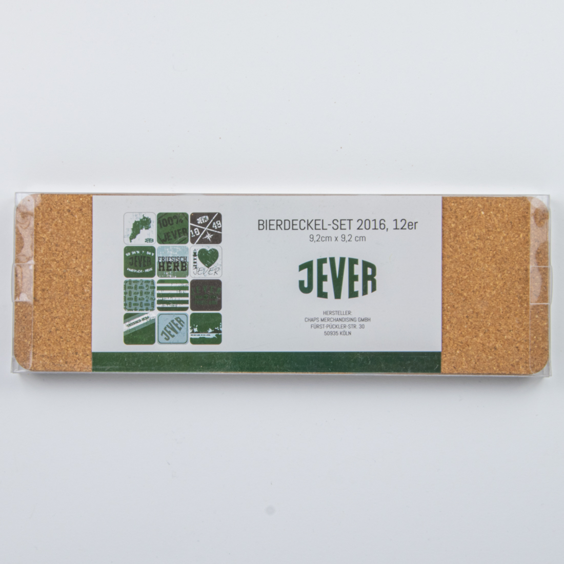 BIERDECKEL-SET 2016, 12er / 9,2cm x 9,2cm / JEVER / HERSTELLER / CHAPS MERCHANDISING GMBH / FÜRST-PÜCKLER-STR. 30 / 50935 KÖLN