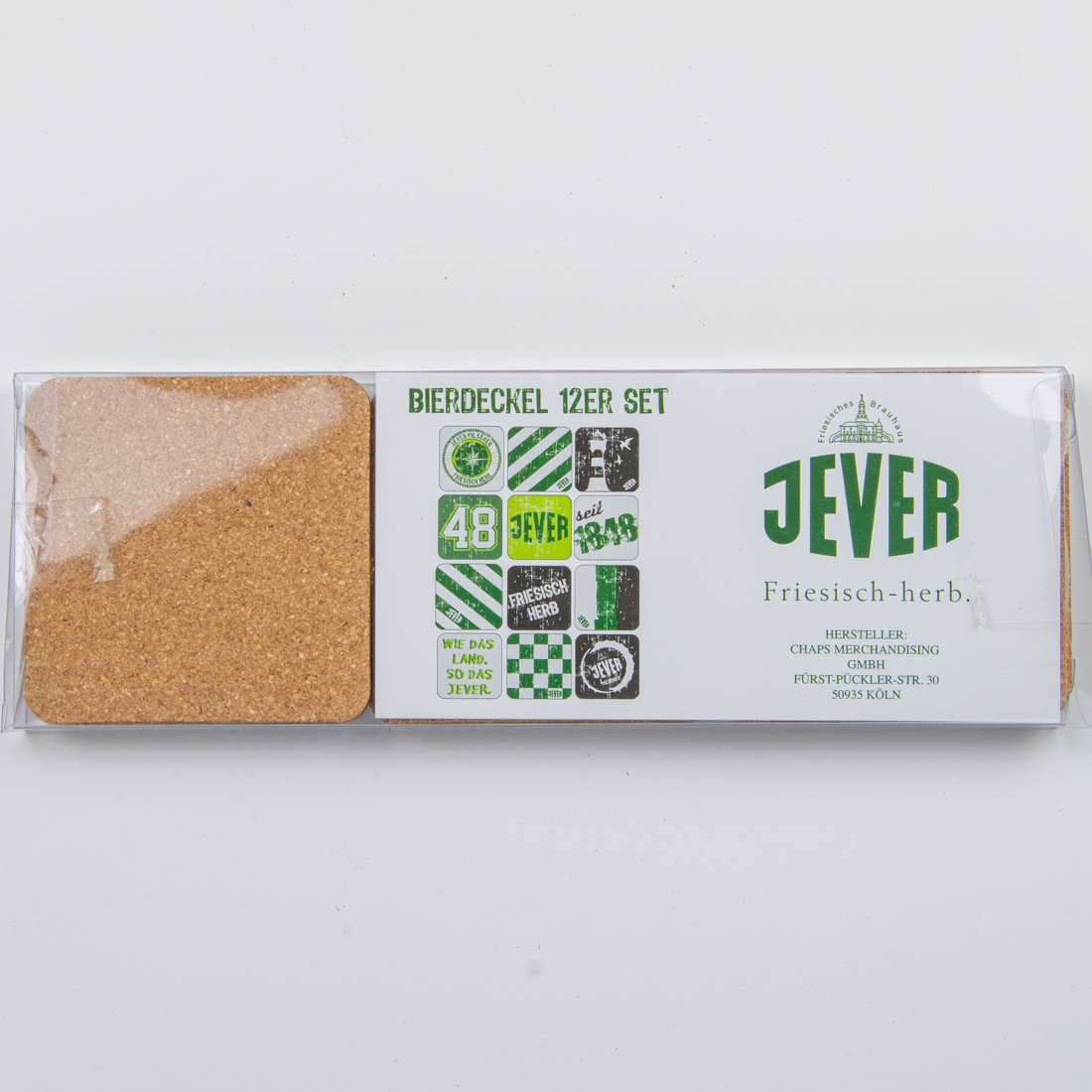 BIERDECKEL 12ER SET / Friesisches Brauhaus / JEVER / Friesisch-herb. / HERSTELLER: / CHAPS MERCHANDISING GMBH / FÜRST-PÜCKLER-STR. 30 / 50935 KÖLN