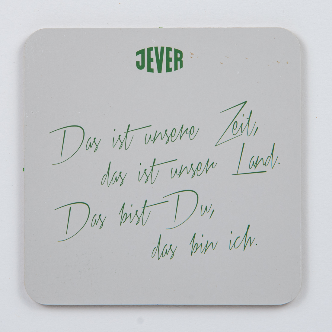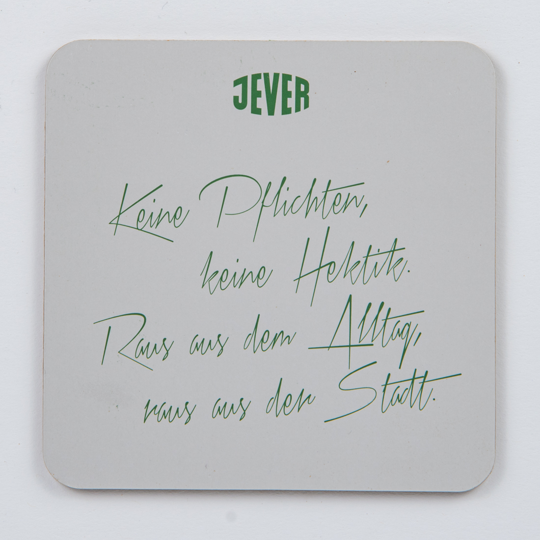 JEVER Das ist genau mein Tag, genau mein Jever. / JEVER Keine Pflichten, keine Hektik. Raus aus dem Alltag, raus aus der Stadt. / JEVER Der Sand unter den Füßen, die Sonne auf der Haut, das Salz in der Luft. / JEVER Das ist unsere Zeit, das ist unser Land. Das bist Du, das bin ich. / JEVER / JEVER / JEVER / JEVER / JEVER / JEVER / JEVER / JEVER