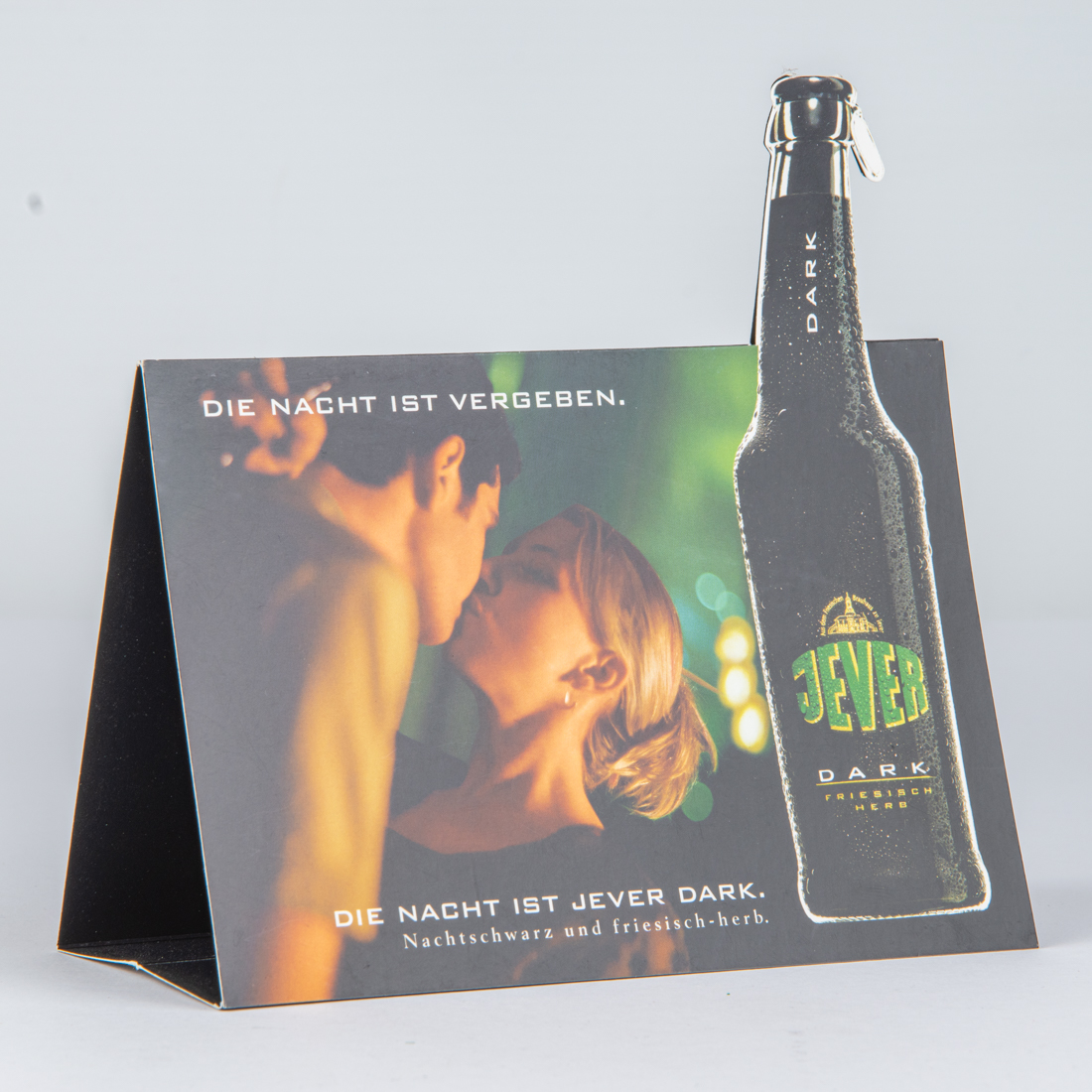 DIE NACHT IST VERGEBEN. / DIE NACHT IST JEVER DARK. / Nachtschwarz und friesisch-herb. / DARK / Aus dem Friesischen Brauhaus zu Jever / JEVER / DARK / FRIESISCH HERB