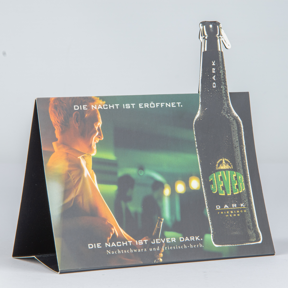 Attribut Wert Alter (min.) Alter (max.) Identifikation (Jever-Fan) ID I004155 / S1686 / B55 Typ Tischaufsteller Attribute (Allgemein) Logo Fun 1 Maße HxBxT (cm) 14,5x14,9x6,8 Material Papier/Pappe Slogan Die Nacht ist Jever Dark Slogan Die Nacht ist eröffnet Slogan Friesisch herb Slogan Nachtschwarz und friesisch herb Sorte Dark