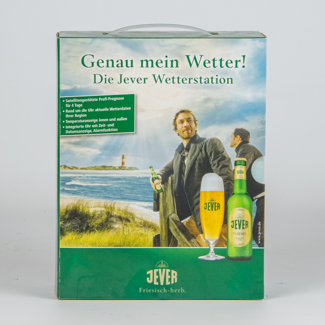 Genau mein Wetter! / Die Jever Wetterstation / Satellitengestützte Profi-Prognose für 4 Tage / Rund um die Uhr aktuelle Wetterdaten Ihrer Region / Temperaturanzeige innen und außen / Integrierte Uhr mit Zeit- und Datumsanzeige, Alarmfunktion / Friesisches Brauhaus zu Jever / JEVER / Friesisch-herb. / … / www.jever.de