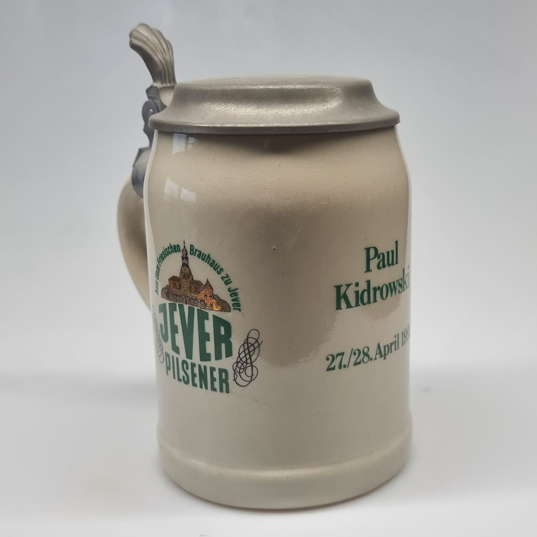 Attribut Wert Alter (min.) Alter (max.) Identifikation (Jever-Fan) ID I004304 / K0364 / Typ Krug Attribute (Allgemein) Form Krug / Seidel Füllstrich geprägt > 0,5l////sahm Herstellername SAHM GmbH & Co. KG Hersteller-Zeichen sahm Inhalt (l) 0,50 Logo Pilsener 6 Maße HxBxT (cm) 16,3x9,7x9,7 Material Steingut Material Zinn Sorte Pilsener Attribute (Zeitstempel) Eigene 19850427, 19850428 27.04.1985 28.04.1985