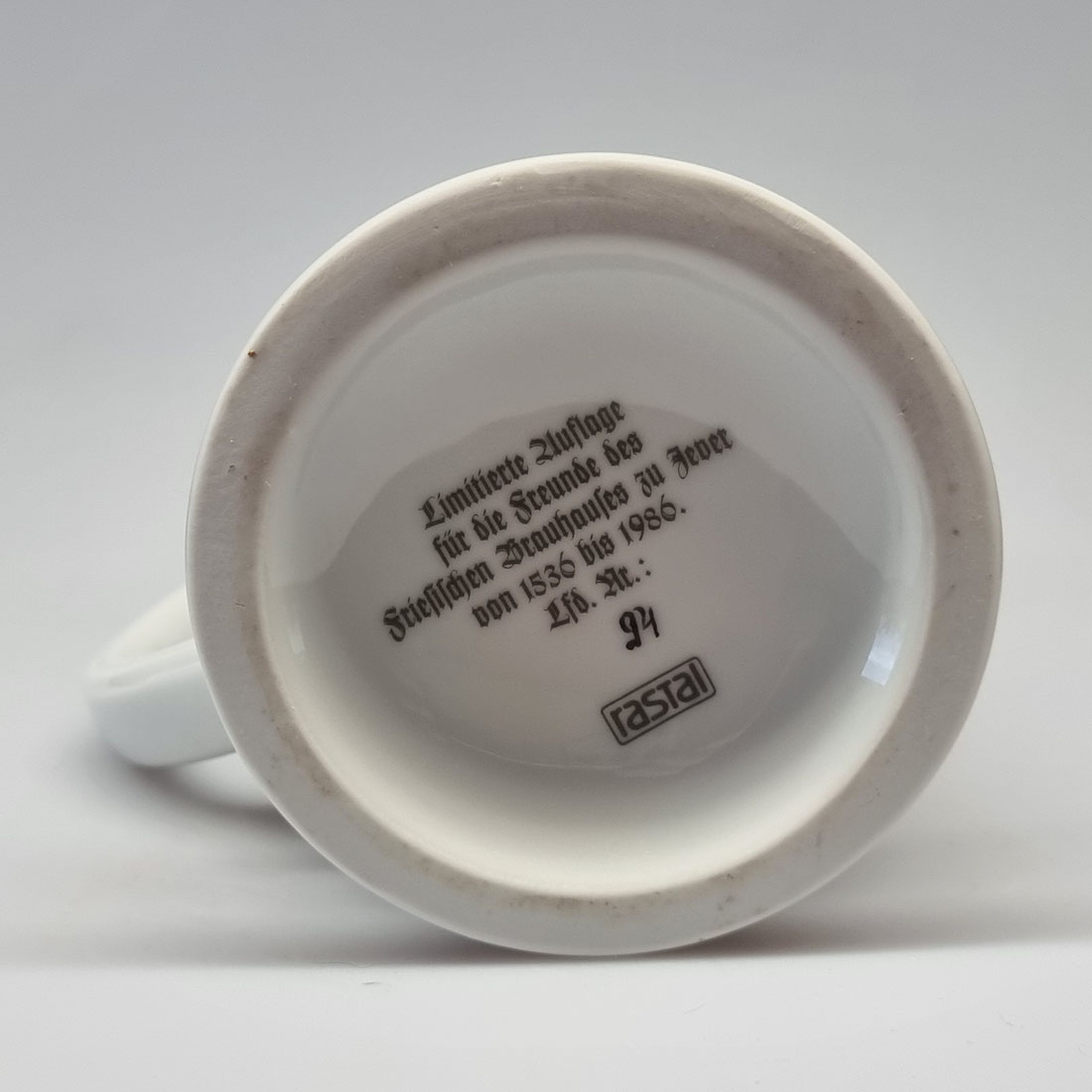 Limitierte Auflage für die Freunde des Friesischen Brauhauses zu Jever von 1536 bis 1986. Lfd. Nr.: 95 / rastal