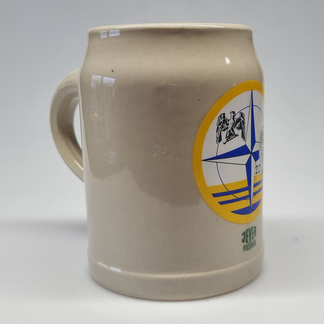 Attribut Wert Alter (min.) Alter (max.) Identifikation (Jever-Fan) ID I004312 / K0372 / Typ Krug Attribute (Allgemein) Form Krug / Seidel Füllstrich geprägt > 0,5l////W Hersteller-Zeichen W Inhalt (l) 0,50 Logo Pilsener 2 Maße HxBxT (cm) 13,0x9,7x9,7 Material Steingut Sorte Pilsener