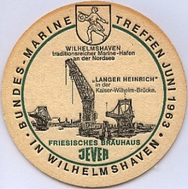 Attribut Wert Alter (min.) Alter (max.) Identifikation (Jever-Fan) ID I000115 / B0847 / S2 Typ Bierdeckel Identifikation (FvB/BDM) Kategorie Serie Nummer 6 Serie I Vorderseite (unbedruckt) Attribute (Allgemein) Event Bundes-Marine-Treffen Form Rund Logo Dachmarke 1 Maße HxBxT (cm) 10,7x10,7x0,1 Material Papier/Pappe Ort Wilhelmshaven > Wilhelmshaven > Wilhelmshaven > Niedersachsen > Deutschland Attribute (Zeitstempel) Eigene 19630600 06/1963 06/1963