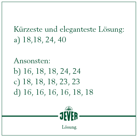 16 18 23 24 39 40 / Friesisches Brauhaus / JEVER / Wie viele Pfeile braucht man, um auf der Zielscheibe genau 100 Punkte zu erzielen? / Lösung unter www.jever.de