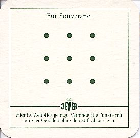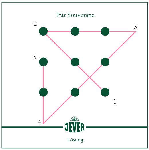 Für Souveräne. / Friesisches Brauhaus / JEVER / Hier ist Weitblick gefragt. Verbinde alle Punkte mit nur vier Geraden ohne den Stift abzusetzen.