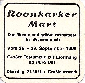 Roonkarker Mart / Das älteste und größte Heimatfest der Wesermarsch / vom 25.-28. September 1999 / Großer Festumzug zur Eröffnung ab 14.45 Uhr / Dienstag 21.30 Uhr Großfeuerwerk