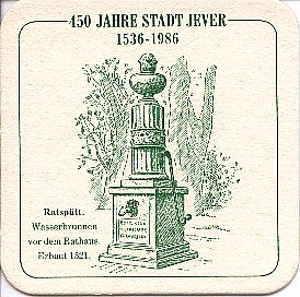 450 JAHRE STADT JEVER / 1536-1986 / Ratspütt. / Wasserbrunnen vor dem Rathaus. Erbaut 1521.