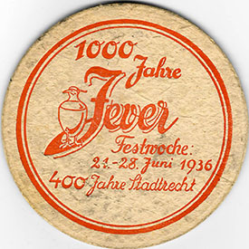 Attribut Wert Alter (min.) Alter (max.) Identifikation (Jever-Fan) ID I001374 / B1372 / S2 Typ Bierdeckel Identifikation (FvB/BDM) Kategorie Datum Attribute (Allgemein) Event 1000 Jahre Jever Event 400 Jahre Stadt Jever Form Rund Logo Pilsener 3 Material Papier/Pappe Ort Jever > Jever > Landkreis Friesland > Niedersachsen > Deutschland Sorte Pilsener Attribute (Zeitstempel) Eigene 19360621, 19360622, 19360623, 19360624, 19360625, 19360626, 19360627, 19360628 21.06.1936 28.06.1936
