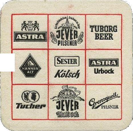 ASTRA / Aus dem Friesischen Brauhaus zu Jever JEVER PILSENER / TUBORG BEER / HANNEN ALT / SESTER Kölsch / ASTRA Urbock / Tucher / JEVER Maibock / Grenzquell PILSNER