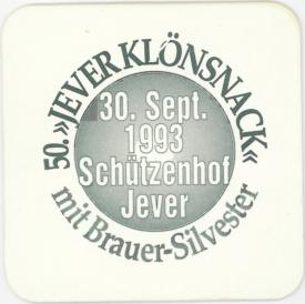 Attribut Wert Alter (min.) Alter (max.) Identifikation (Jever-Fan) ID I001509 / B1509 / S2 Typ Bierdeckel Identifikation (FvB/BDM) Kategorie Datum Vorderseite 8-7 Attribute (Allgemein) Event 50. Jever-Klönsnack Form Quadratisch Gastronomie Schützenhof Logo Pilsener 1 Maße HxBxT (cm) 9,3x9,3x0,1 Material Papier/Pappe Ort Jever > Jever > Landkreis Friesland > Niedersachsen > Deutschland Slogan Friesisch herb Sorte Pilsener Attribute (Zeitstempel) Eigene 19930930 30.09.1993 30.09.1993