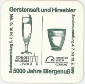Gerstensaft und Hirsebier / Sonderausstellung 5.7. bis 31.10.1998 / SCHLOSS MUSEUM JEVER / Sonderausstellung 4.7. bis 13.9.1998 / STAATLICHES MUSEUM FÜR NATURKUNDE UND VORGESCHICHTE OLDENBURG / 5000 Jahre Biergenuß