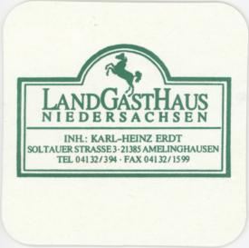 Attribut Wert Alter (min.) Alter (max.) Identifikation (Jever-Fan) ID I001540 / B1541 / S2 Typ Bierdeckel Identifikation (FvB/BDM) Kategorie Gastronomie Vorderseite 8-13 Attribute (Allgemein) Form Quadratisch Gastronomie Landgasthaus Niedersachsen Logo Dachmarke 2 Maße HxBxT (cm) 9,3x9,3x0,1 Material Papier/Pappe Ort Amelinghausen > Samtgemeinde Amelinghausen > Landkreis Lüneburg > Niedersachsen > Deutschland Sorte (Dachmarke)