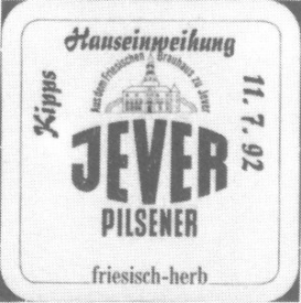 Attribut Wert Alter (min.) Alter (max.) Identifikation (Jever-Fan) ID I001589 / B1589 / S2 Typ Bierdeckel Identifikation (FvB/BDM) Kategorie Datum Attribute (Allgemein) Event Kipps Hauseinweihung Form Quadratisch Logo Pilsener 1 Maße HxBxT (cm) 9,3x9,3x0,1 Material Papier/Pappe Slogan Friesisch herb Sorte Pilsener Attribute (Zeitstempel) Eigene 19920711 11.07.1992 11.07.1992