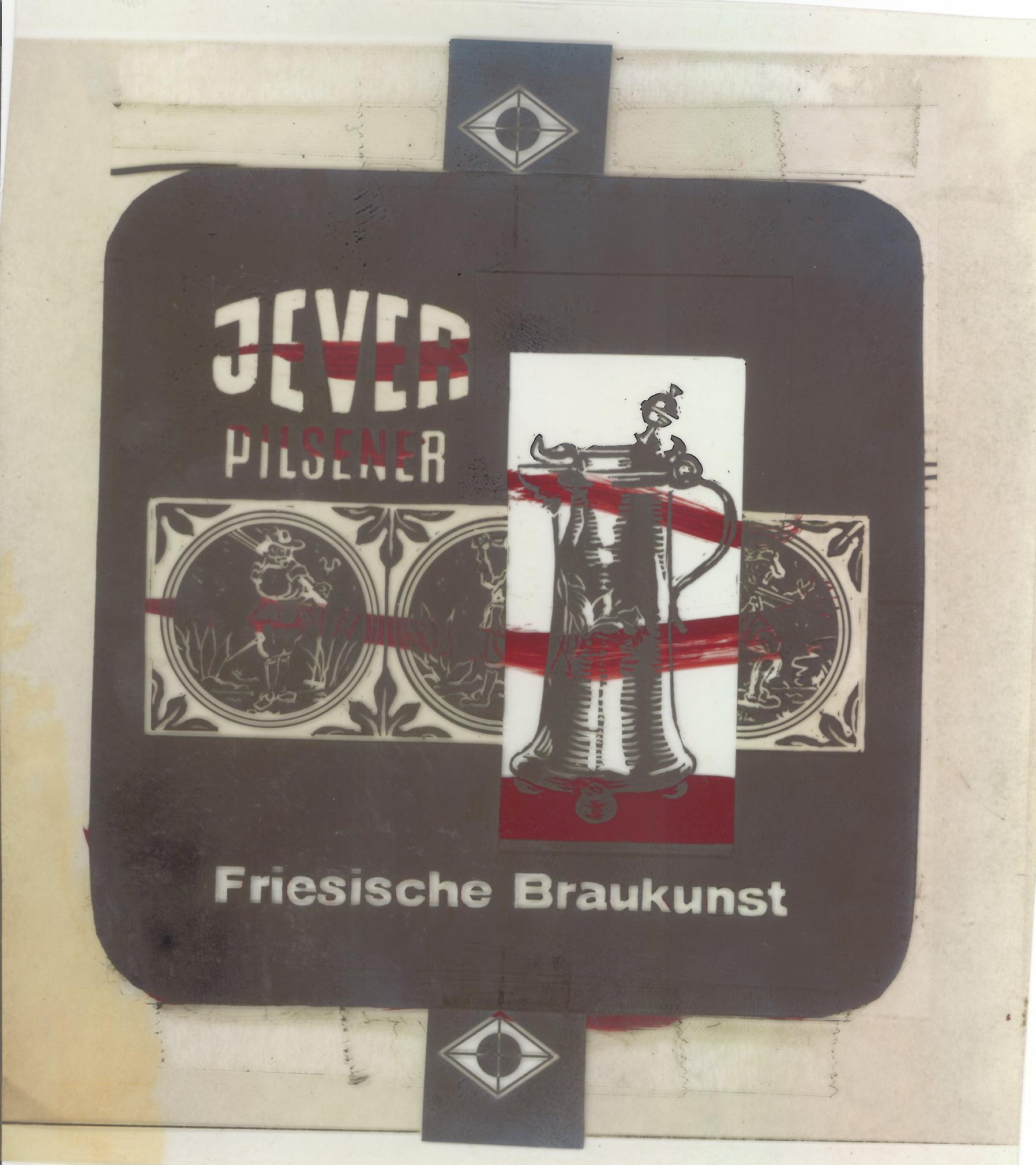 Hierbei handelt es sich um die Originalklischees für die Vorderseite des Bierdeckels B0888, gleichzeitig auch FvB-Vorderseite “3-1” (auf Deckeln B0934-B0938) sowie den dazugehörigen Andruck auf einem alten Originalumschlag aus der Druckerei. Möglicherweise ist der Deckel B0888 somit aus dem Jahr 1971, was zeitlich möglich wäre.