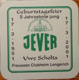 Aus dem Friesischen Brauhaus zu Jever / Jever / Geburtstagsfeier / 5 Jahrzehnte jung / 17.3.1951 / 17.3.2001 / Uwe Scholta / Preussen Clubheim Lengerich