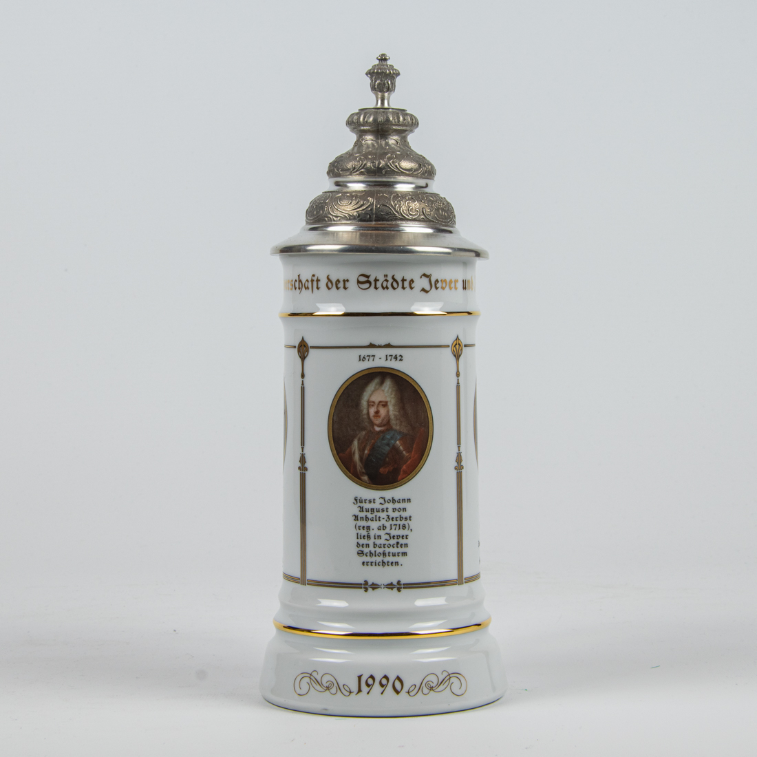 Partnerschaft der Städte Jever u Zerbst / 1677-1742 / Fürst Johann August von Anhalt-Zerbst (reg. Ab 1718), ließ in Jever den barocken Schloßturm errichten. / 1990