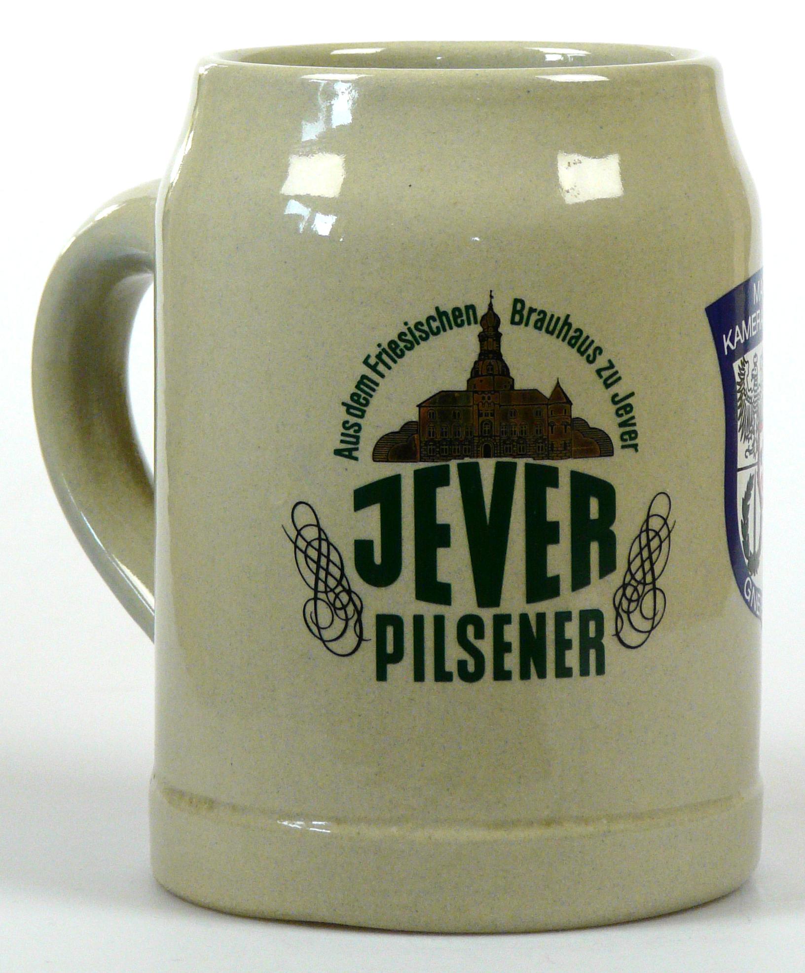 Attribut Wert Alter (min.) Alter (max.) Identifikation (Jever-Fan) ID I001922 / K0028 / B14 Typ Krug Attribute (Allgemein) Form Krug / Seidel Füllstrich geprägt > 0,5l////W Hersteller-Zeichen W Inhalt (l) 0,50 Logo Pilsener 6 Maße HxBxT (cm) 13,3x10x10 Material Steingut Ort > > > > Sorte Pilsener