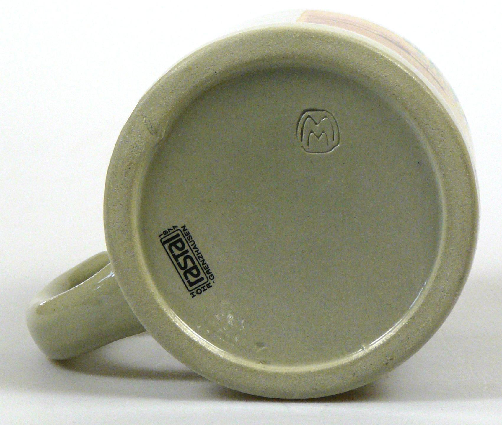 Attribut Wert Alter (min.) Alter (max.) Identifikation (Jever-Fan) ID I001941 / K0047 / B16 Typ Krug Attribute (Allgemein) Form Krug / Seidel Füllstrich geprägt > 0,5l//// Herstellername Rastal GmbH & Co. KG Hersteller-Zeichen WW Hersteller-Zeichen rastal Inhalt (l) 0,50 Logo Pilsener 2 Maße HxBxT (cm) 12,9x10x10 Material Steingut Sorte Pilsener Attribute (Zeitstempel) Eigene 19770000 1977 1977