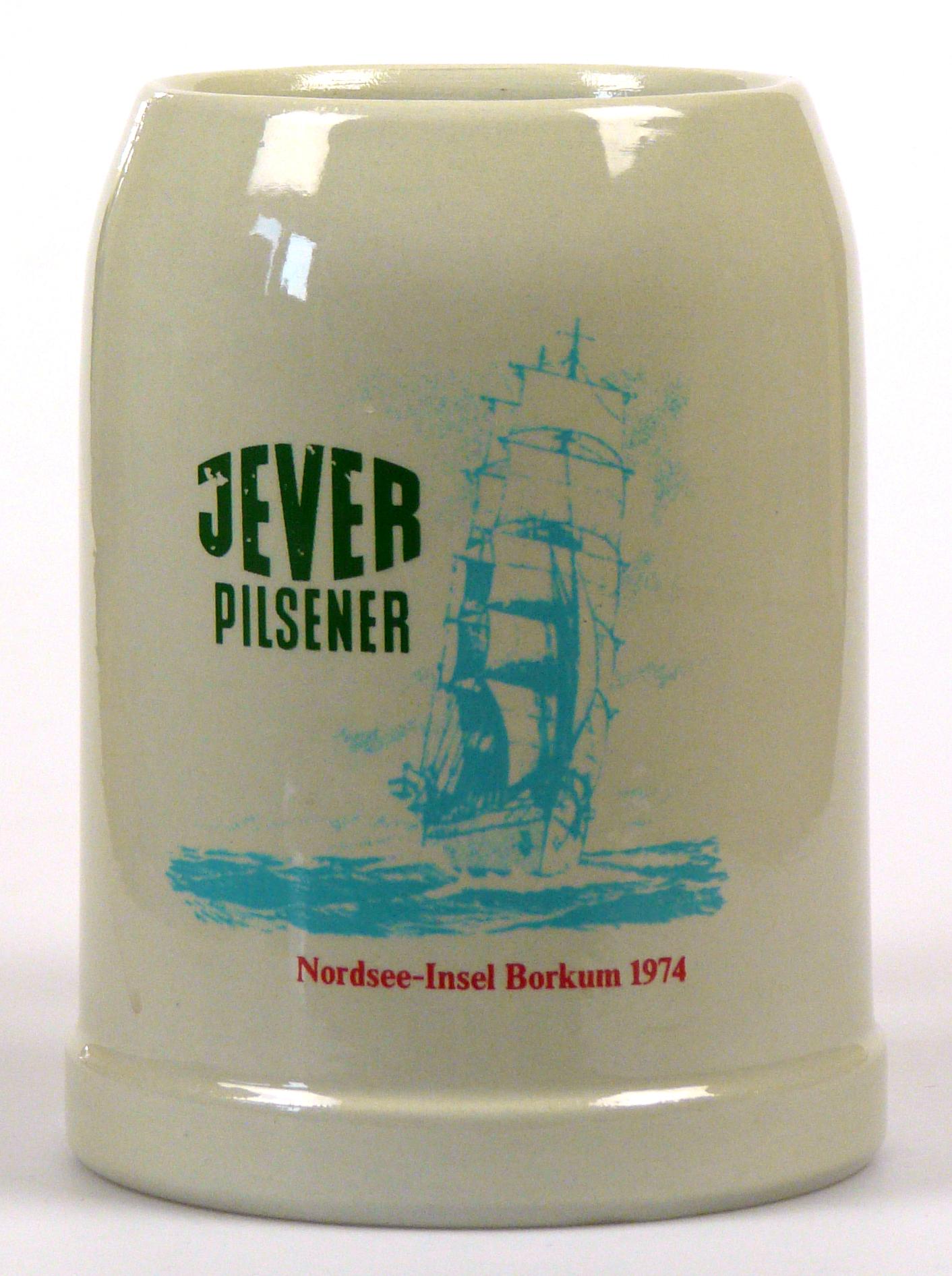 Attribut Wert Alter (min.) Alter (max.) Identifikation (Jever-Fan) ID I001951 / K0057 / B15 Typ Krug Attribute (Allgemein) Form Krug / Seidel Füllstrich geprägt > 0,5l//// Hersteller-Zeichen WW Inhalt (l) 0,50 Logo Pilsener 2 Maße HxBxT (cm) 13,2x10,2x10,2 Material Steingut Ort Borkum > Borkum > Landkreis Leer > Niedersachsen > Deutschland Sorte Pilsener Attribute (Zeitstempel) Eigene 19740000 1974 1974