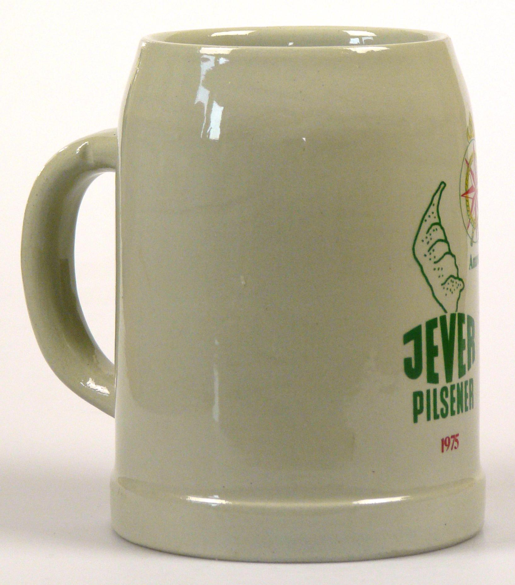 Attribut Wert Alter (min.) Alter (max.) Identifikation (Jever-Fan) ID I001952 / K0058 / B16 Typ Krug Attribute (Allgemein) Form Krug / Seidel Füllstrich geprägt > 0,5l//// Hersteller-Zeichen WW Inhalt (l) 0,50 Logo Pilsener 2 Maße HxBxT (cm) 13x9,9x9,9 Material Steingut Ort Amrum > Amrum > Kreis Nordfriesland > Schleswig-Holstein > Deutschland Sorte Pilsener Attribute (Zeitstempel) Eigene 19750000 1975 1975
