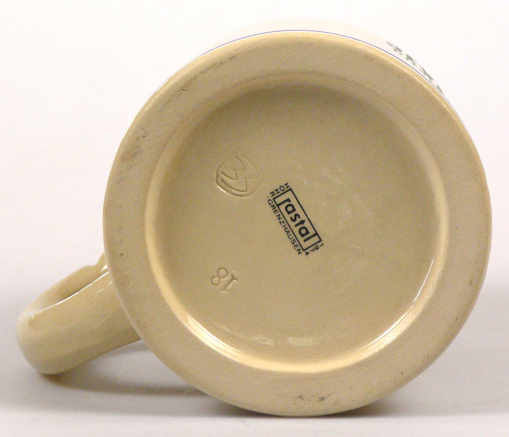 Attribut Wert Alter (min.) Alter (max.) Identifikation (Jever-Fan) ID I001956 / K0062 / B15 Typ Krug Attribute (Allgemein) Form Krug / Seidel Füllstrich geprägt > 0,5l//// Herstellername Rastal GmbH & Co. KG Hersteller-Zeichen WW Hersteller-Zeichen rastal Inhalt (l) 0,50 Logo Pilsener 2 Maße HxBxT (cm) 10,1x10,1x10,1 Material Steingut Ort Juist > Juist > Landkreis Aurich > Niedersachsen > Deutschland Sorte Pilsener Attribute (Zeitstempel) Eigene 19740000 1974 1974