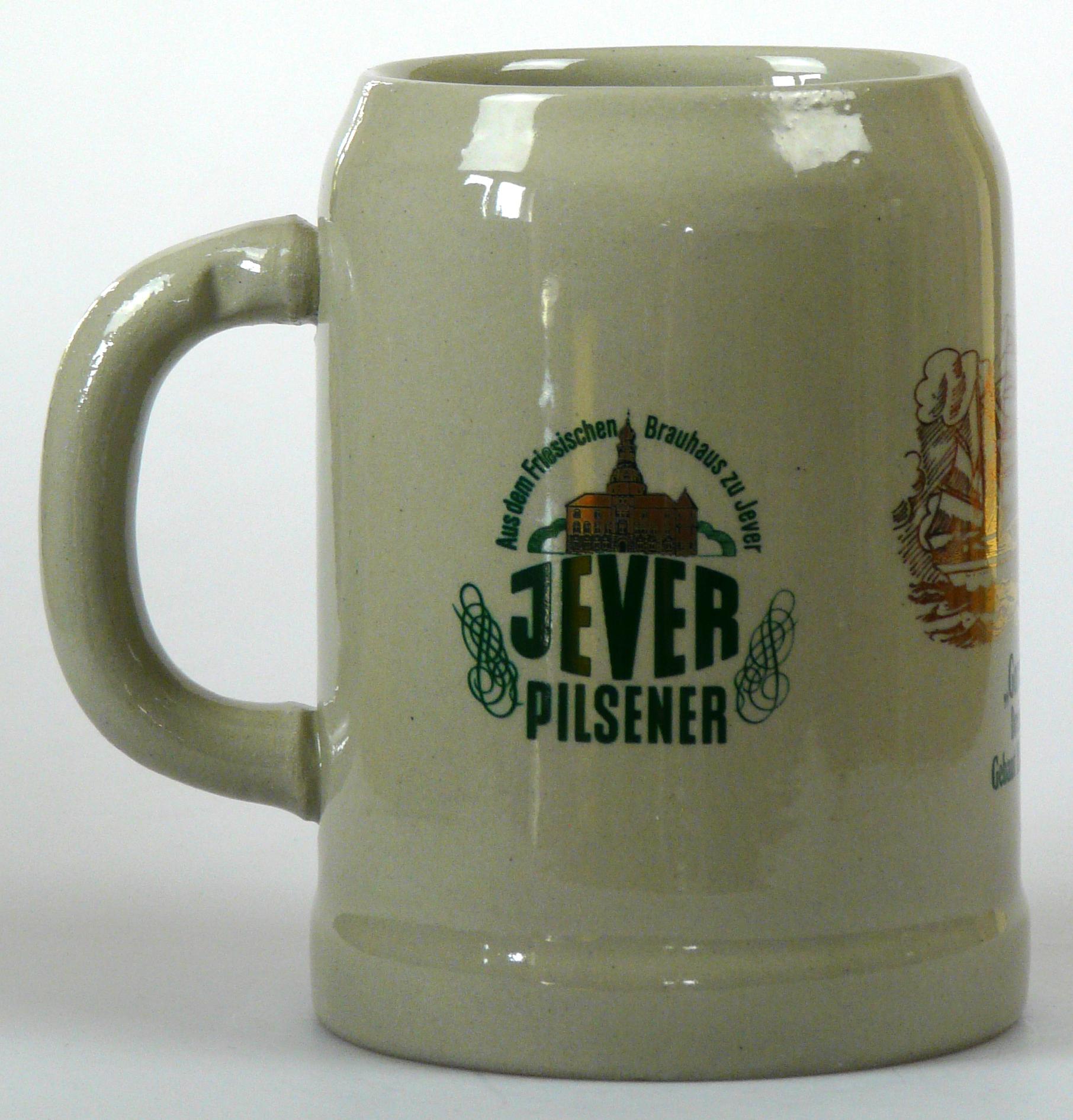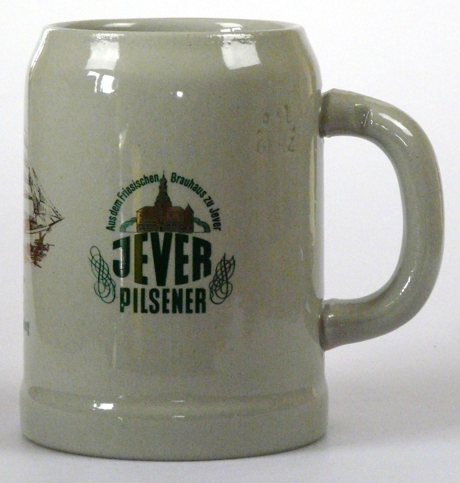 Attribut Wert Alter (min.) Alter (max.) Identifikation (Jever-Fan) ID I001962 / K0068 / B1 Typ Krug Attribute (Allgemein) Form Krug / Seidel Füllstrich geprägt > 0,5l////GERZ Hersteller-Zeichen GERZ Inhalt (l) 0,50 Logo Pilsener 6 Maße HxBxT (cm) 13,2x10x10 Material Steingut Sorte Pilsener