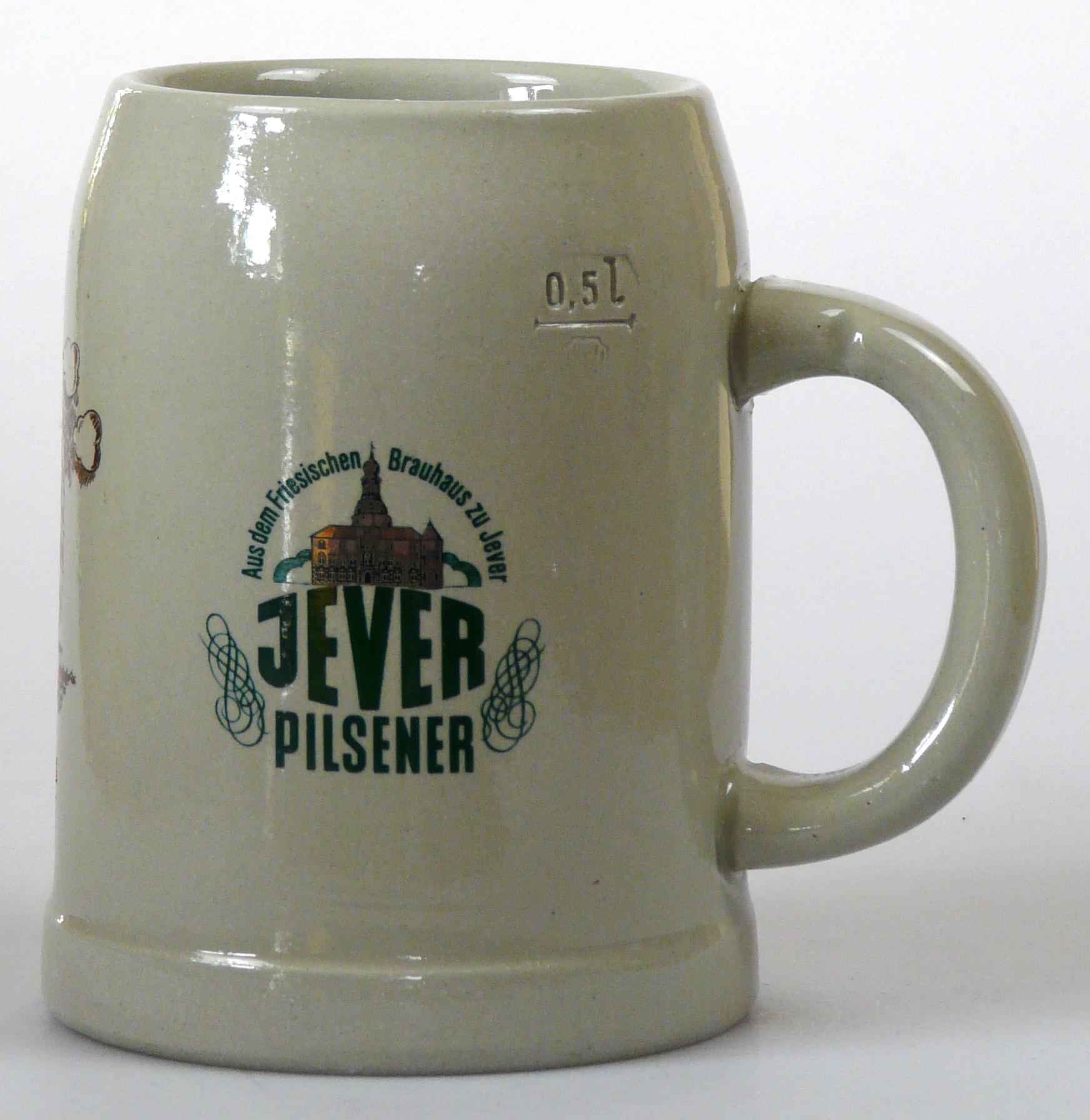 Attribut Wert Alter (min.) Alter (max.) Identifikation (Jever-Fan) ID I001969 / K0075 / B1 Typ Krug Attribute (Allgemein) Form Krug / Seidel Füllstrich geprägt > 0,5l////WW Herstellername Rastal GmbH & Co. KG Hersteller-Zeichen WW Hersteller-Zeichen rastal Inhalt (l) 0,50 Logo Pilsener 6 Maße HxBxT (cm) 13x10x10 Material Steingut Sorte Pilsener Attribute (Zeitstempel) Eigene 19830000 1983 1983