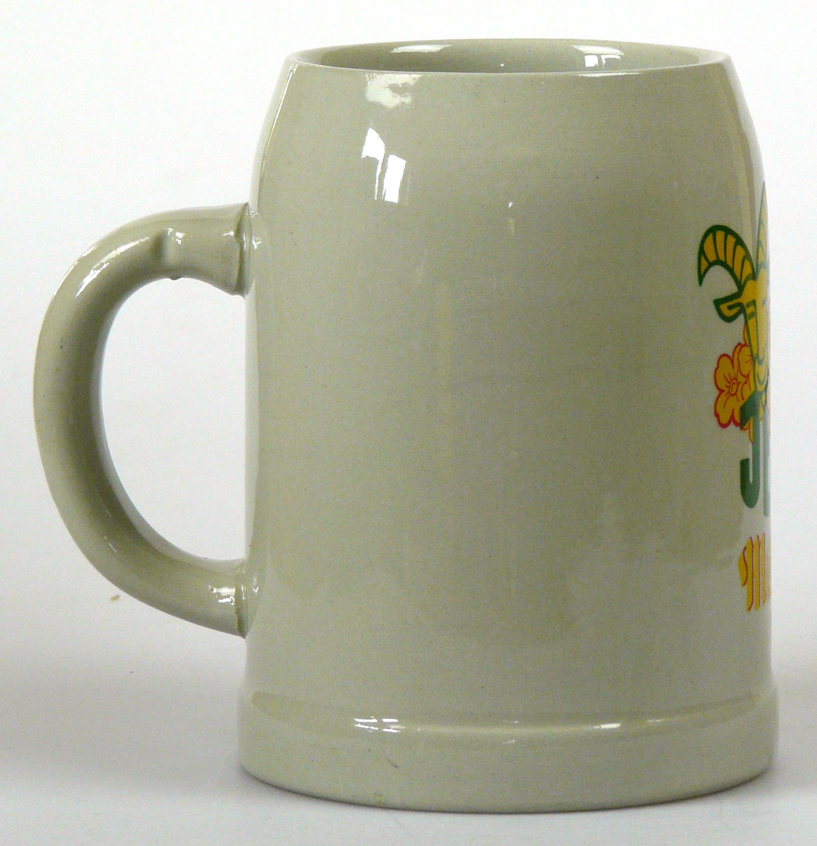 Attribut Wert Alter (min.) Alter (max.) Identifikation (Jever-Fan) ID I001992 / K0098 / B3 Typ Krug Attribute (Allgemein) Form Krug / Seidel Füllstrich geprägt > 0,5l//// Hersteller-Zeichen WW Inhalt (l) 0,50 Logo Maibock 8 Maße HxBxT (cm) 12,8x9,8x9,8 Material Steingut Sorte Maibock Attribute (Zeitstempel) Eigene 19750000 1975 1975