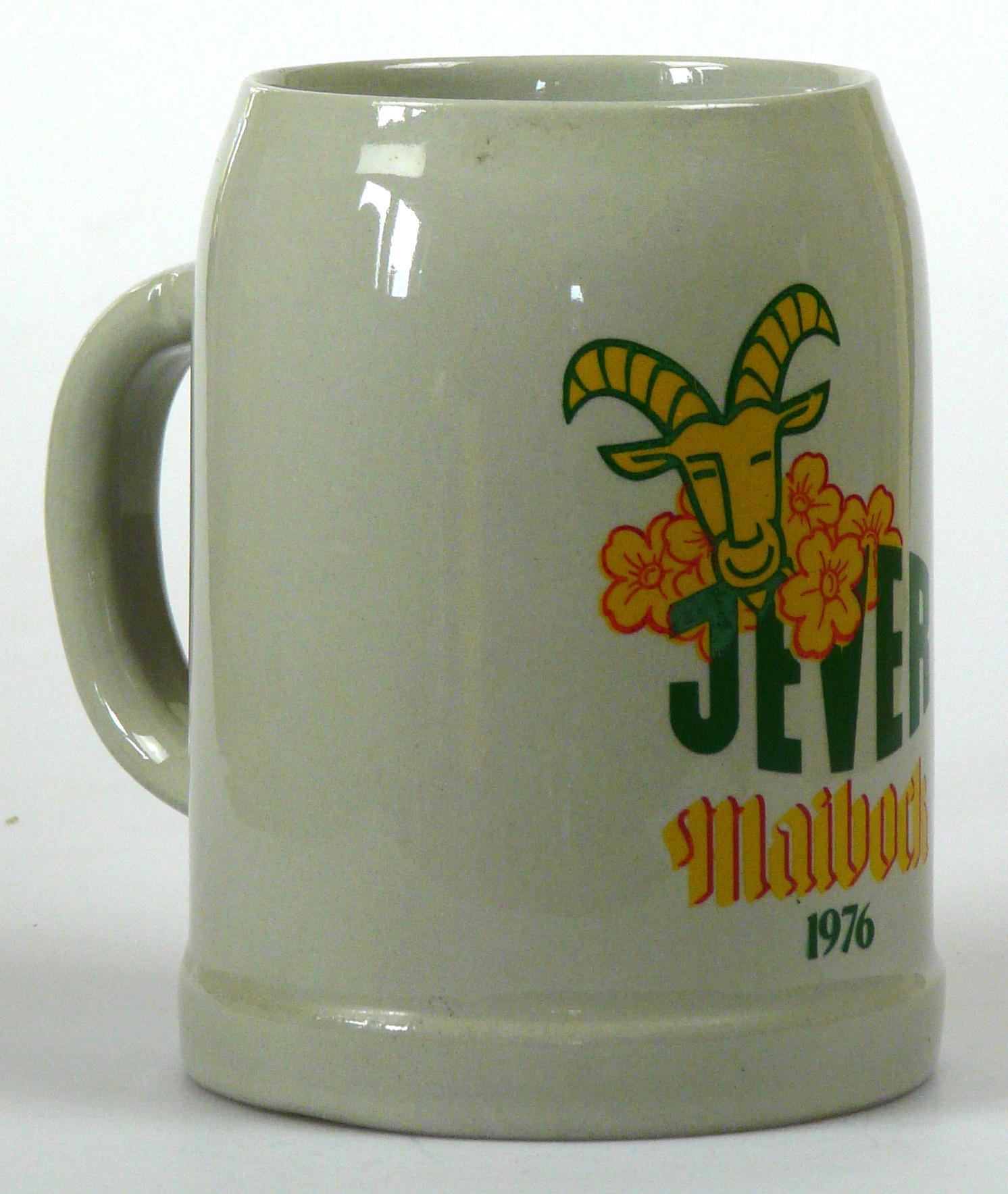 Attribut Wert Alter (min.) Alter (max.) Identifikation (Jever-Fan) ID I001993 / K0099 / B3 Typ Krug Attribute (Allgemein) Form Krug / Seidel Füllstrich geprägt > 0,5l//// Hersteller-Zeichen WW Inhalt (l) 0,50 Logo Maibock 8 Maße HxBxT (cm) 12,6x9,7x9,7 Material Steingut Sorte Maibock Attribute (Zeitstempel) Eigene 19760000 1976 1976