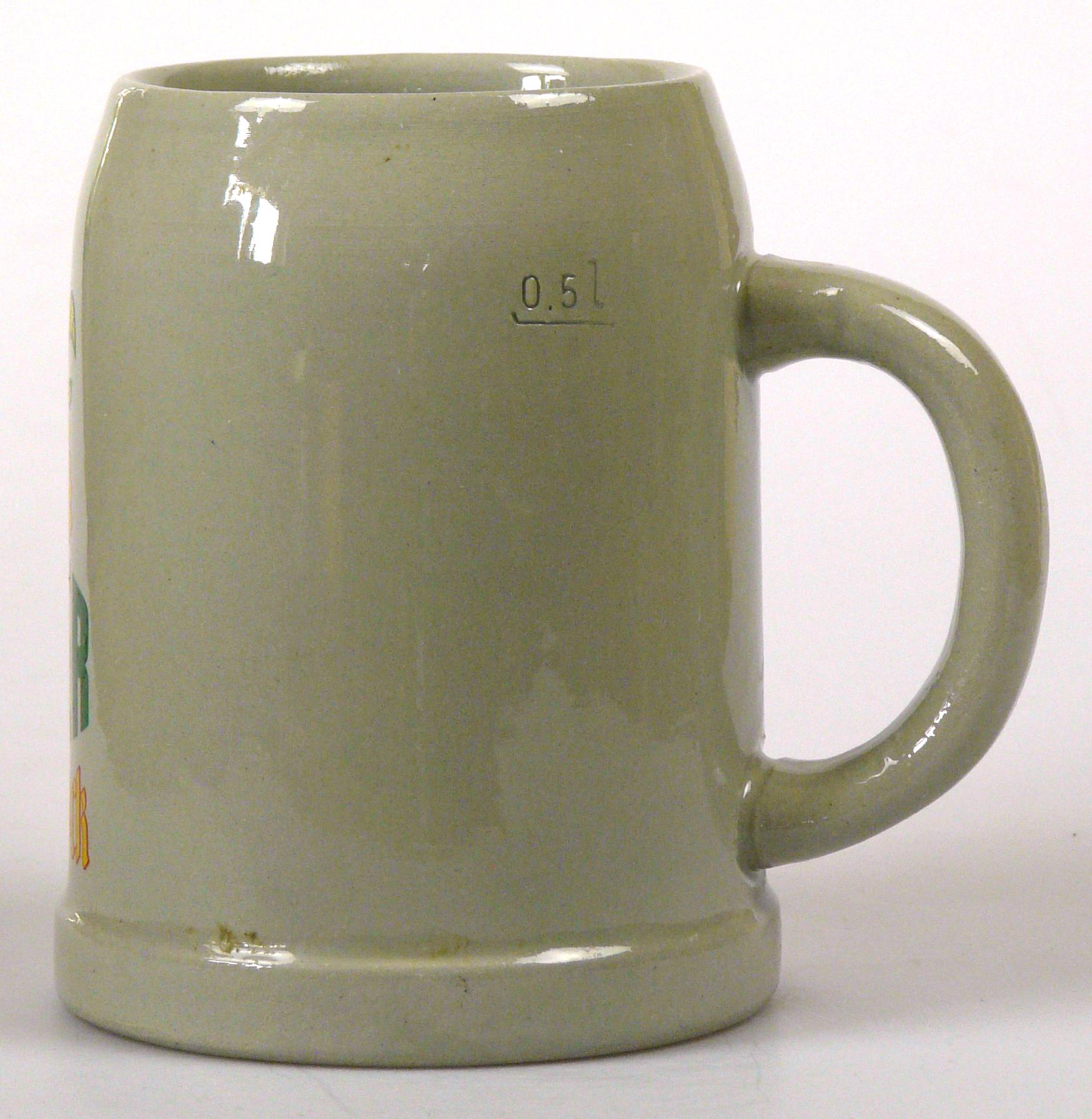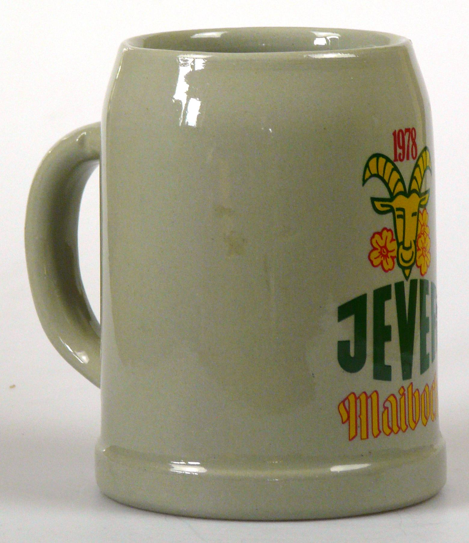 Attribut Wert Alter (min.) Alter (max.) Identifikation (Jever-Fan) ID I001995 / K0101 / B3 Typ Krug Attribute (Allgemein) Form Krug / Seidel Füllstrich geprägt > 0,5l//// Hersteller-Zeichen WW Inhalt (l) 0,50 Logo Maibock 8 Maße HxBxT (cm) 12,8x10x10 Material Steingut Sorte Maibock Attribute (Zeitstempel) Eigene 19780000 1978 1978