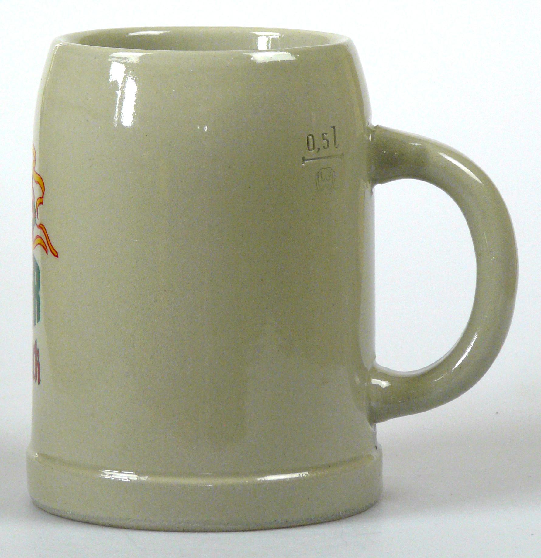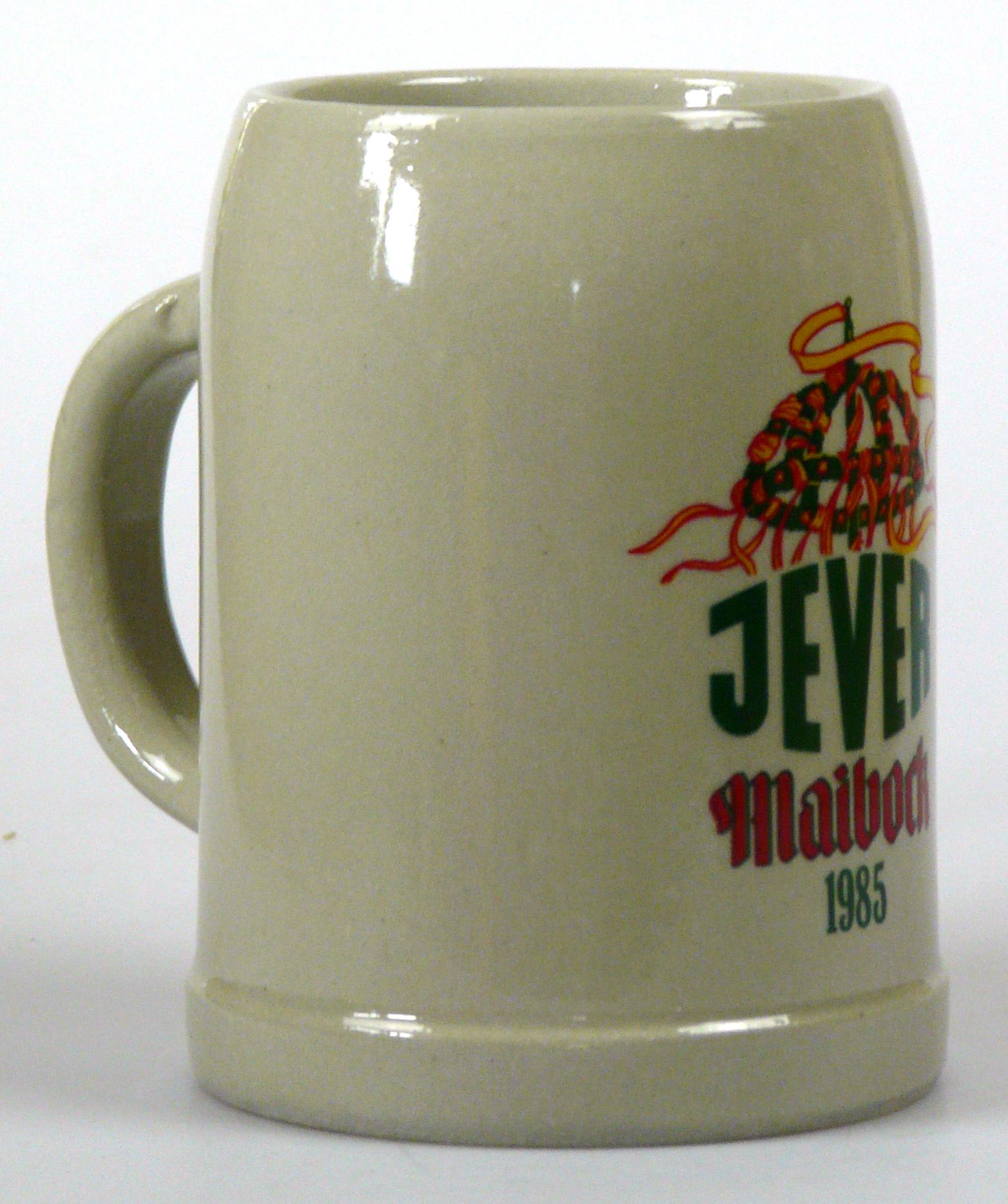 Attribut Wert Alter (min.) Alter (max.) Identifikation (Jever-Fan) ID I002003 / K0109 / B3 Typ Krug Attribute (Allgemein) Form Krug / Seidel Füllstrich geprägt > 0,5l////WW Hersteller-Zeichen WW Inhalt (l) 0,50 Logo Maibock 3 Maße HxBxT (cm) 12,9x9,9x9,9 Material Steingut Sorte Maibock Attribute (Zeitstempel) Eigene 19850000 1985 1985