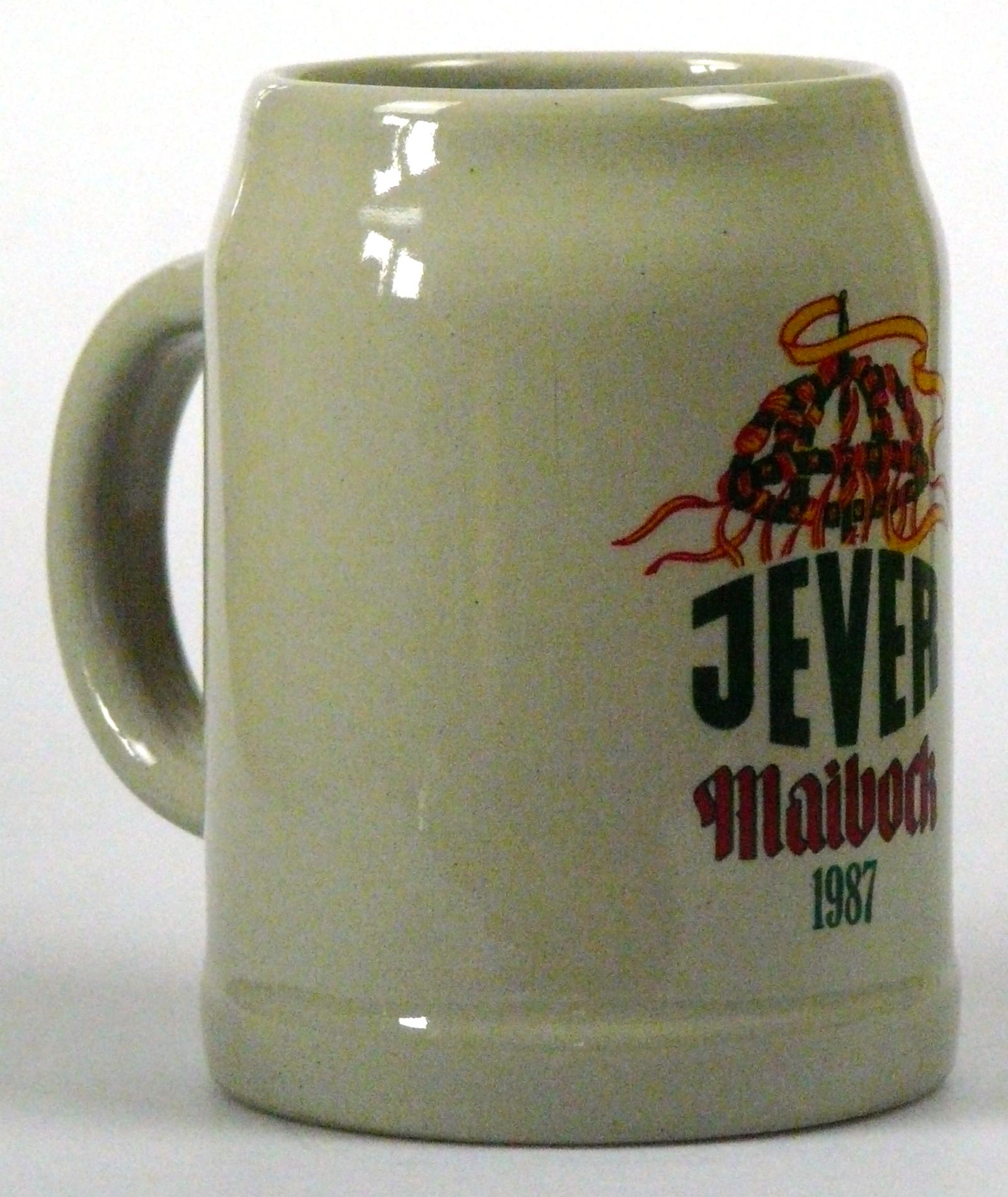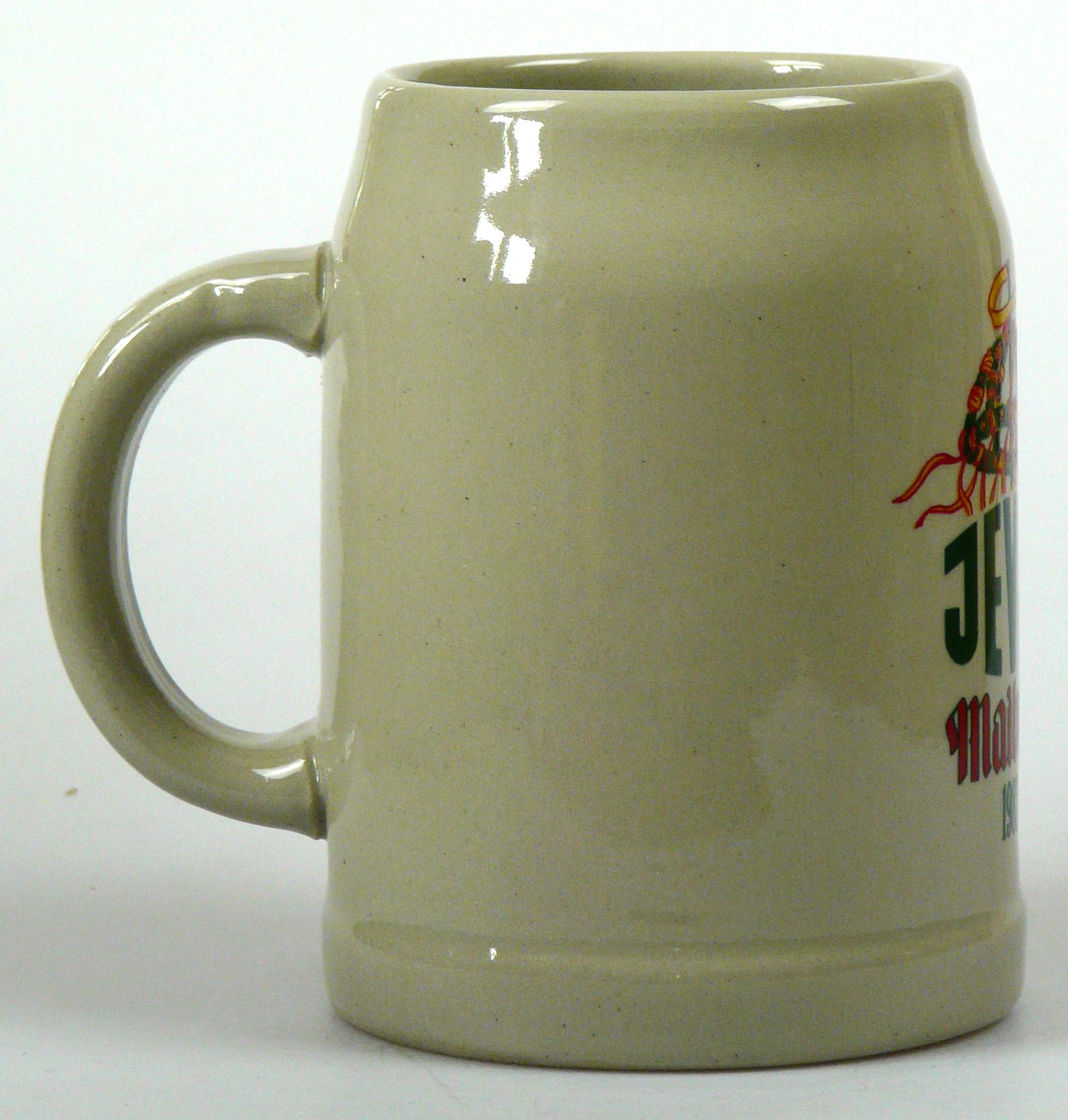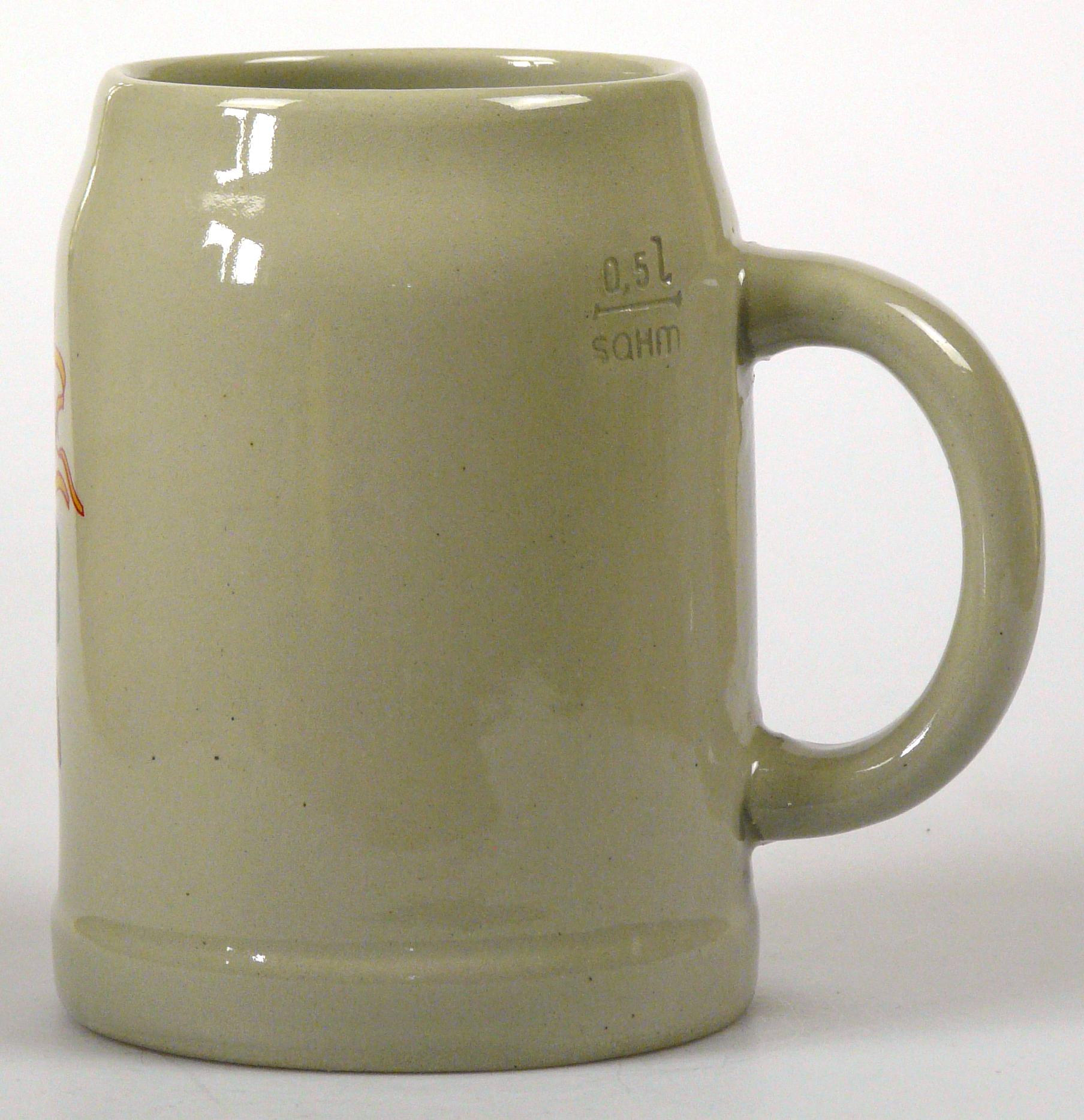 Attribut Wert Alter (min.) Alter (max.) Identifikation (Jever-Fan) ID I002005 / K0111 / B4 Typ Krug Attribute (Allgemein) Form Krug / Seidel Füllstrich geprägt > 0,5l////sahm Herstellername SAHM GmbH & Co. KG Hersteller-Zeichen sahm Inhalt (l) 0,50 Logo Maibock 3 Maße HxBxT (cm) 13,1x9,9x9,9 Material Steingut Sorte Maibock Attribute (Zeitstempel) Eigene 19870000 1987 1987