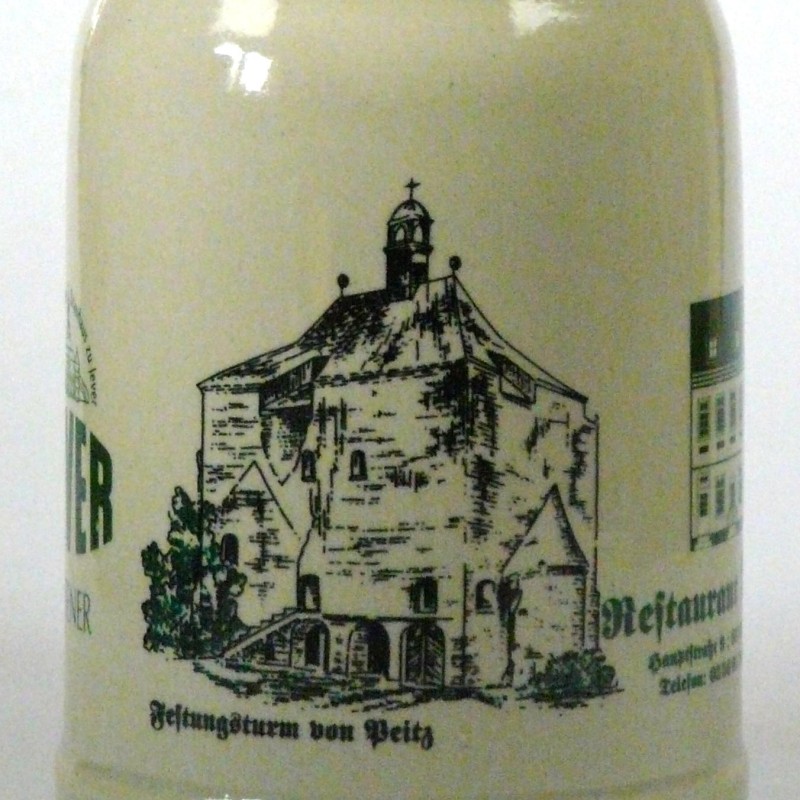 Gemäß Inhaber des Restaurants ist das Herstellungsjahr dieser Krüge 2001, die Auflage ist limitiert auf 300 Stück. Ausgabe anlässlich der 700 Jahrfeier der Fischer und Festungsstadt Peitz, welche 1301 erstmals urkundlich erwähnt wurde.