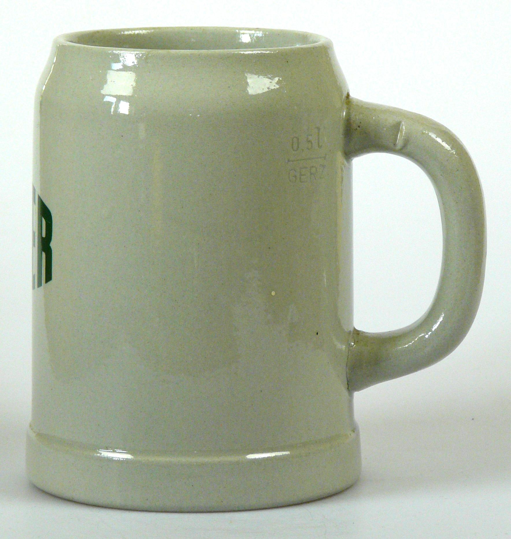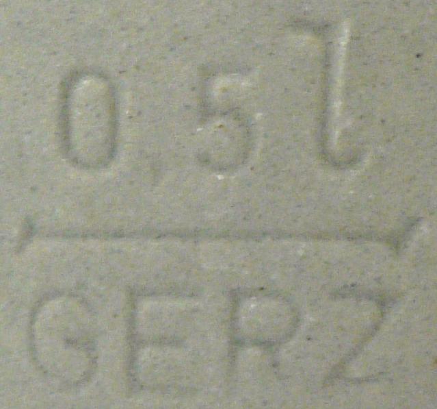 Attribut Wert Alter (min.) Alter (max.) Identifikation (Jever-Fan) ID I002051 / K0157 / B7 Typ Krug Attribute (Allgemein) Form Krug / Seidel Füllstrich geprägt > 0,5l////GERZ Hersteller-Zeichen GERZ Inhalt (l) 0,50 Logo Dachmarke 1 Maße HxBxT (cm) 13,3x10,2x10,2 Material Steingut Sorte (Dachmarke)