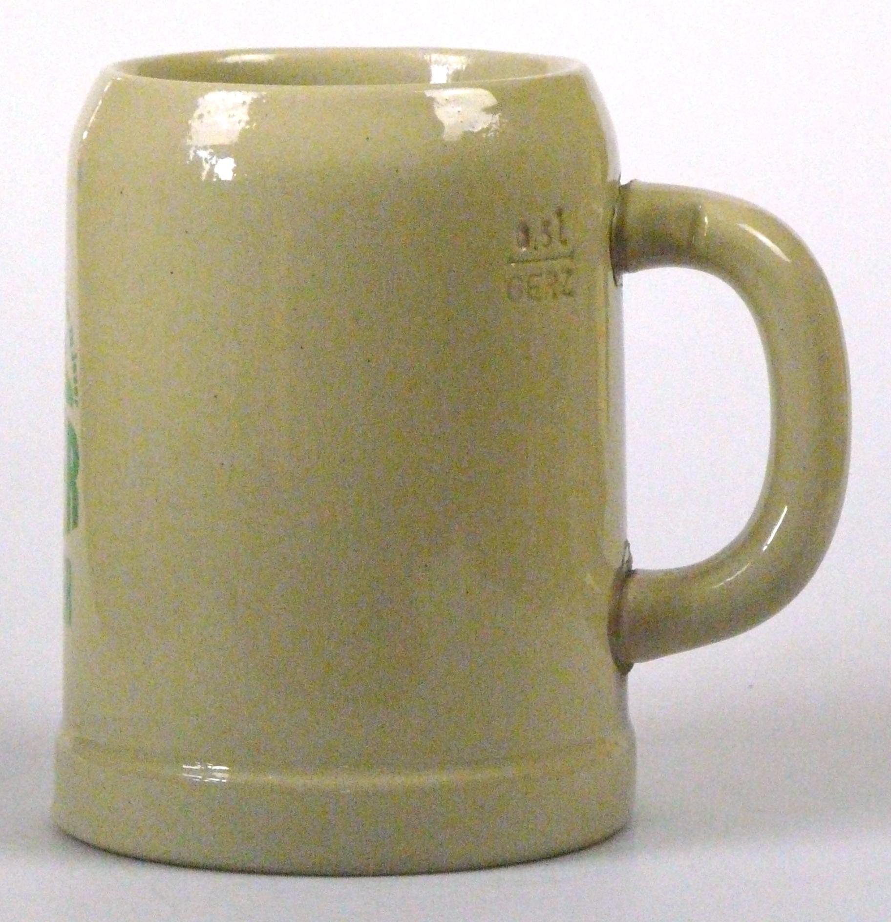 Attribut Wert Alter (min.) Alter (max.) Identifikation (Jever-Fan) ID I002056 / K0162 / B7 Typ Krug Attribute (Allgemein) Form Krug / Seidel Füllstrich geprägt > 0,5l////GERZ Hersteller-Zeichen GERZ Inhalt (l) 0,50 Logo Pilsener 21 Maße HxBxT (cm) 13x10x10 Material Steingut Sorte Pilsener