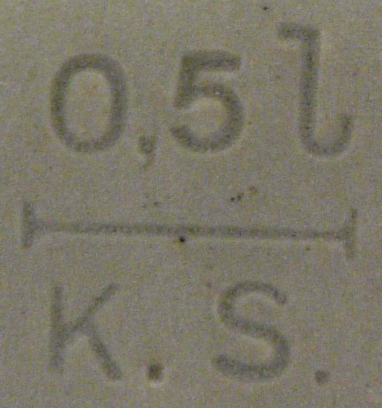 Attribut Wert Alter (min.) Alter (max.) Identifikation (Jever-Fan) ID I002076 / K0173 / B8 Typ Krug Attribute (Allgemein) Form Krug / Seidel Füllstrich geprägt > 0,5l////K.S. Herstellername Bierkrugfabrik Klaus Ströder GmbH & Co. KG Hersteller-Zeichen rastal Inhalt (l) 0,50 Maße HxBxT (cm) 12,7x10x10 Material Steingut Sorte (Dachmarke)