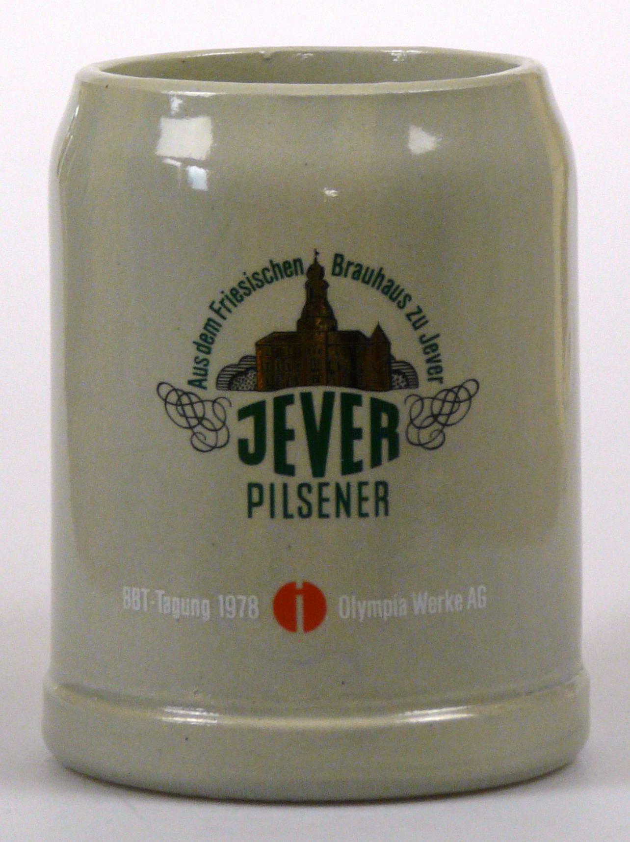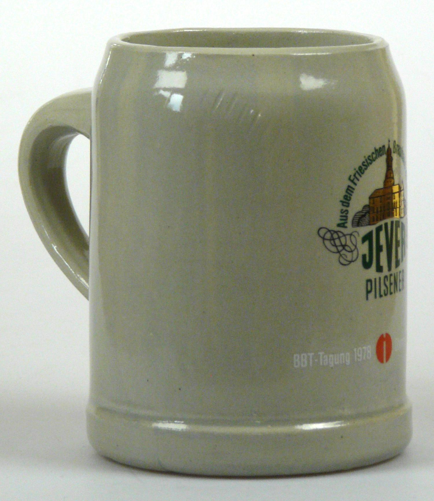 Attribut Wert Alter (min.) Alter (max.) Identifikation (Jever-Fan) ID I002079 / K0176 / B8 Typ Krug Attribute (Allgemein) Event BBT-Tagung Form Krug / Seidel Füllstrich geprägt > 0,5l////FS Hersteller-Zeichen FS Inhalt (l) 0,50 Logo Pilsener 22 Maße HxBxT (cm) 12,6x10x10 Material Steingut Sorte Pilsener Attribute (Zeitstempel) Eigene 19780000 1978 1978