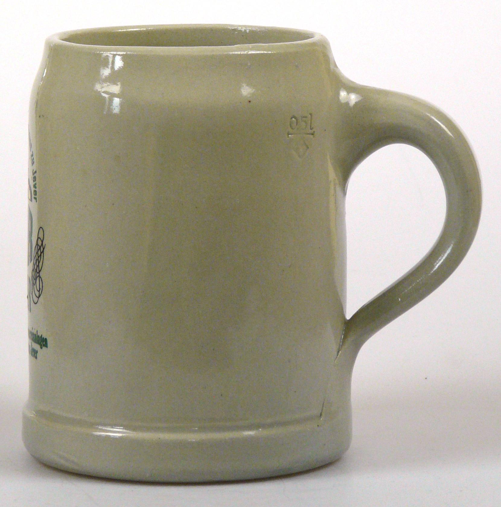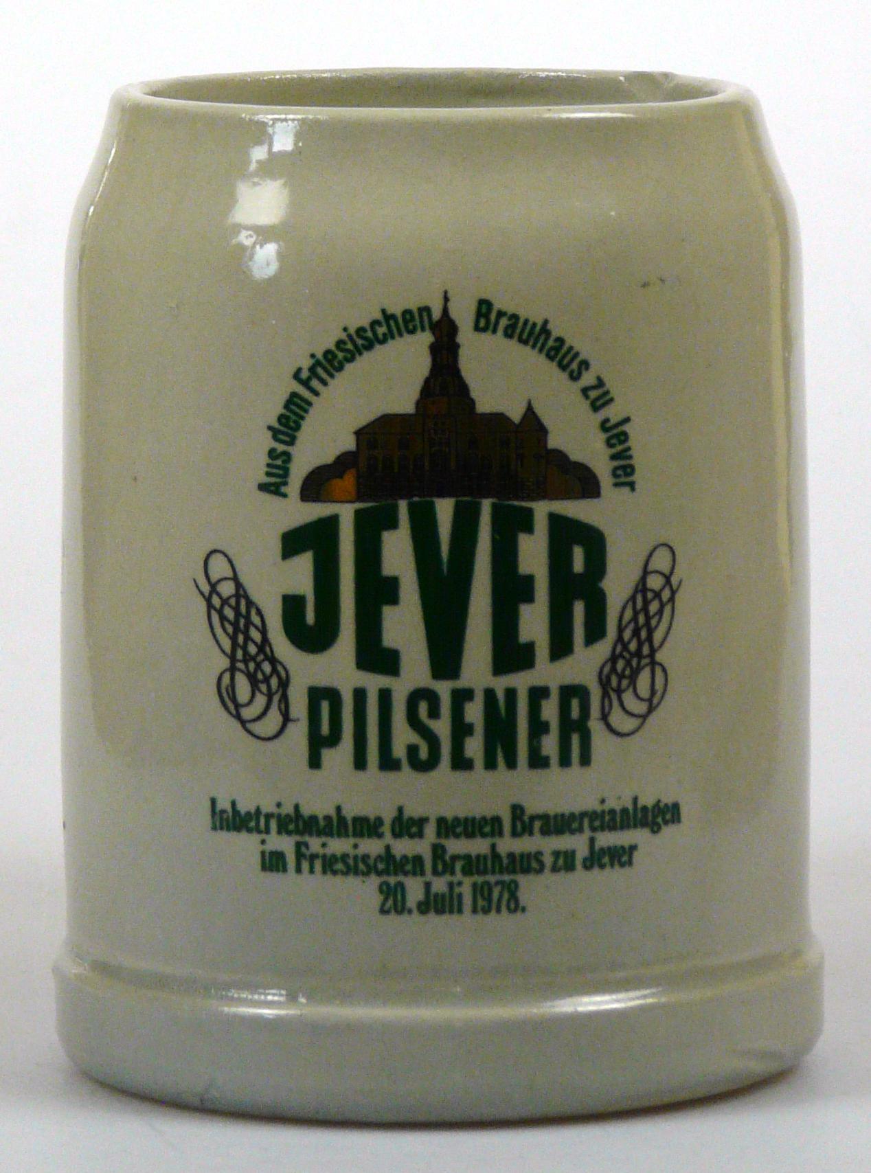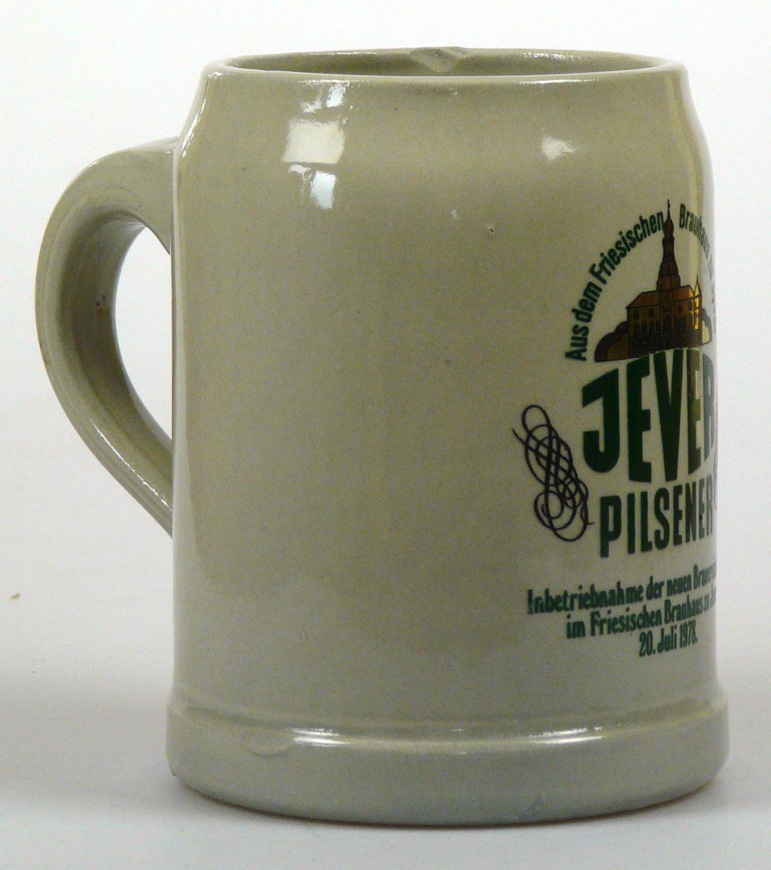Attribut Wert Alter (min.) Alter (max.) Identifikation (Jever-Fan) ID I002080 / K0177 / B8 Typ Krug Attribute (Allgemein) Event Inbetriebnahme neue Brauerei-Anlagen Form Krug / Seidel Füllstrich geprägt > 0,5l////FS Hersteller-Zeichen FS Inhalt (l) 0,50 Logo Pilsener 6 Maße HxBxT (cm) 12,7x10x10 Material Steingut Motiv Rundliche Schrift Ort Jever > Jever > Landkreis Friesland > Niedersachsen > Deutschland Sorte Pilsener Attribute (Zeitstempel) Eigene 19780720 20.07.1978 20.07.1978