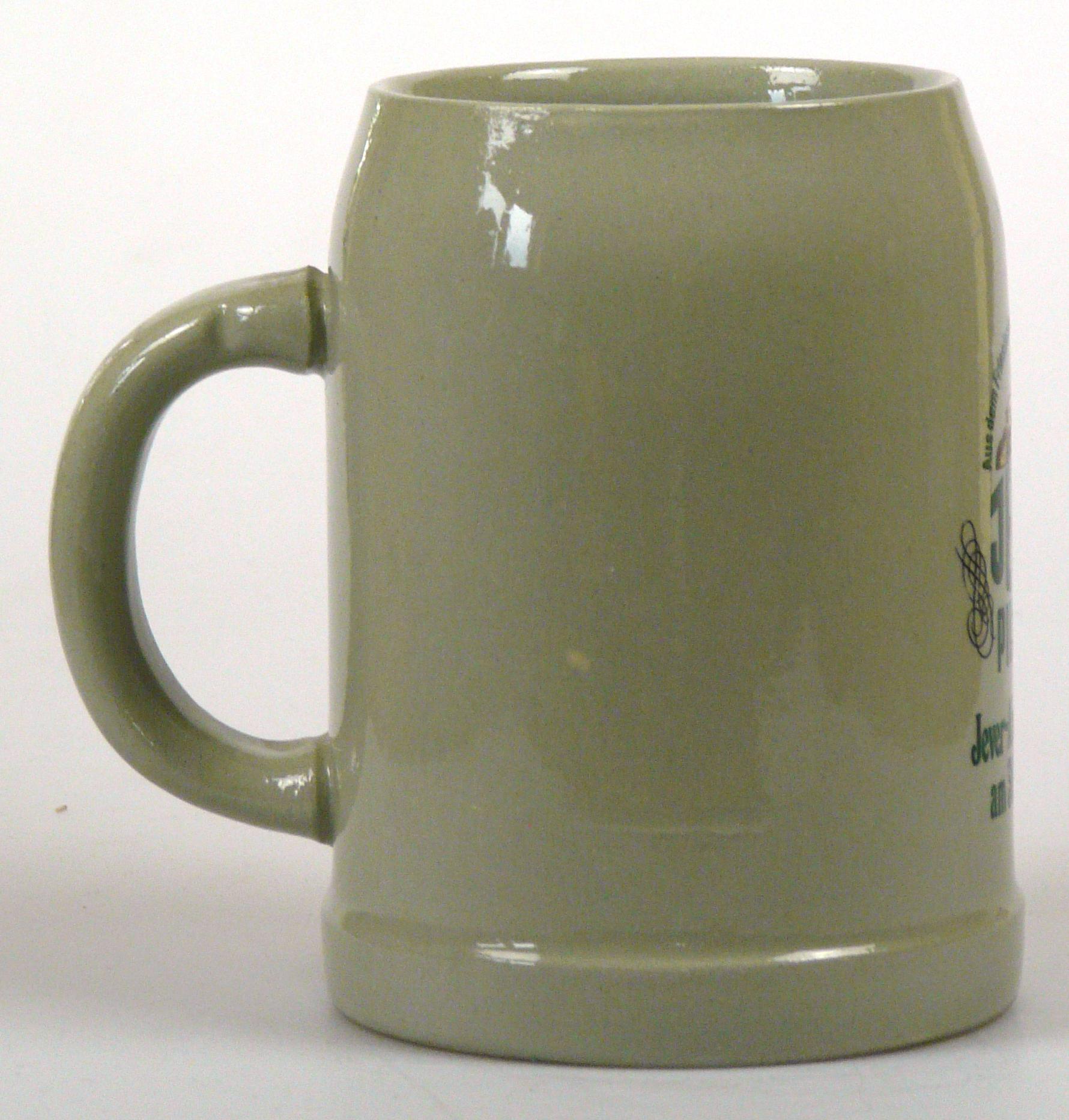 Attribut Wert Alter (min.) Alter (max.) Identifikation (Jever-Fan) ID I002081 / K0178 / B8 Typ Krug Attribute (Allgemein) Event Jever-Abend in Bonn Form Krug / Seidel Füllstrich geprägt > 0,5l//// Hersteller-Zeichen WW Inhalt (l) 0,50 Logo Pilsener 6 Maße HxBxT (cm) 12,9x9,8x9,8 Material Steingut Motiv Rundliche Schrift Ort Bonn > Bonn > Bonn > Nordrhein-Westfalen > Deutschland Sorte Pilsener Attribute (Zeitstempel) Eigene 19790530 30.05.1979 30.05.1979