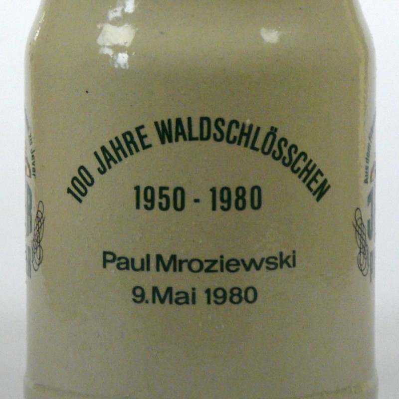 Attribut Wert Alter (min.) Alter (max.) Identifikation (Jever-Fan) ID I002083 / K0180 / B8 Typ Krug Attribute (Allgemein) Event 100 Jahre Waldschlößchen Form Krug / Seidel Füllstrich geprägt > 0,5l////W Gastronomie Waldschlößchen Hersteller-Zeichen W Inhalt (l) 0,50 Logo Pilsener 6 Maße HxBxT (cm) 12,9x9,9x9,9 Material Steingut Sorte Pilsener Attribute (Zeitstempel) Eigene 19800509 09.05.1980 09.05.1980