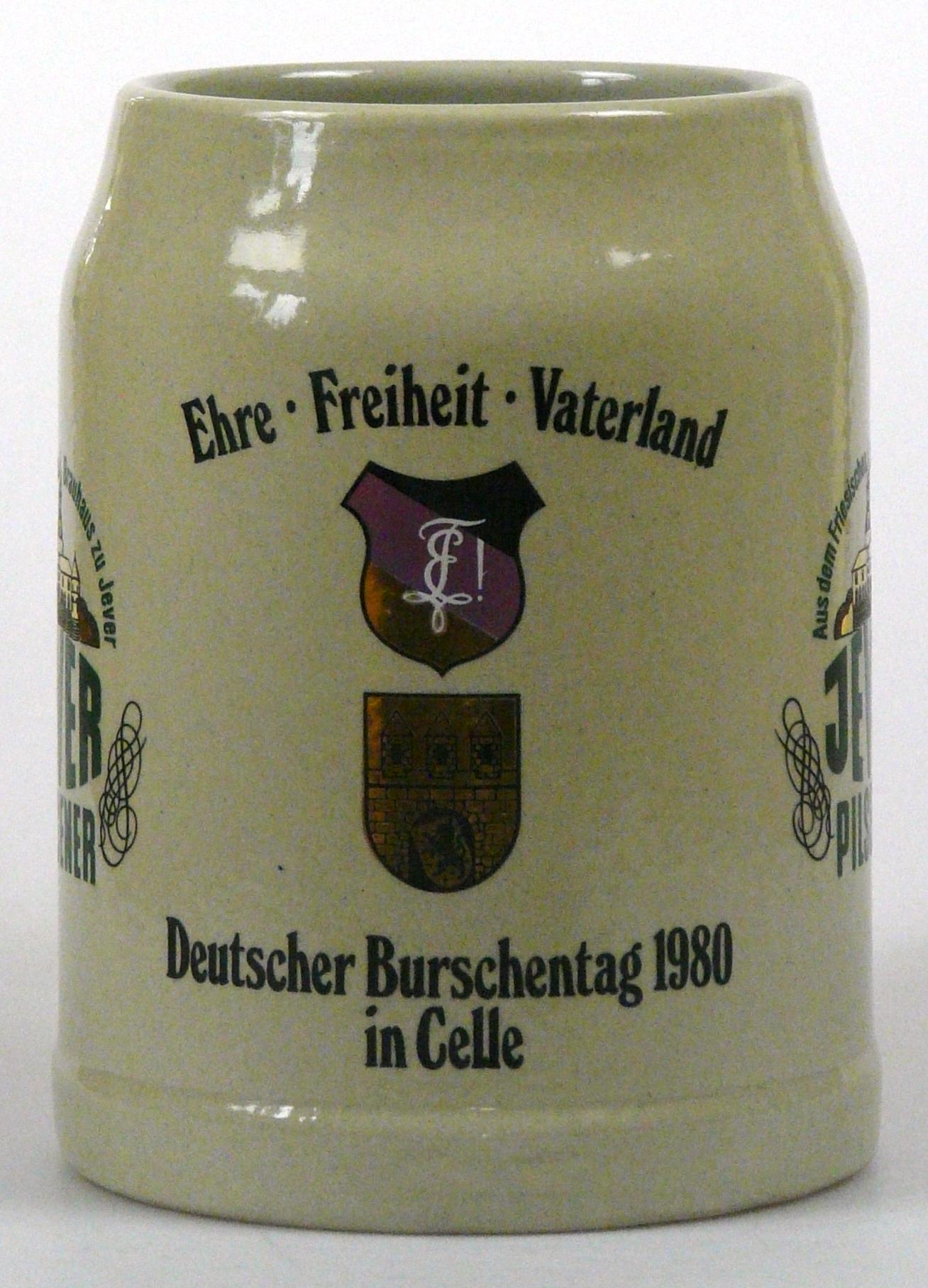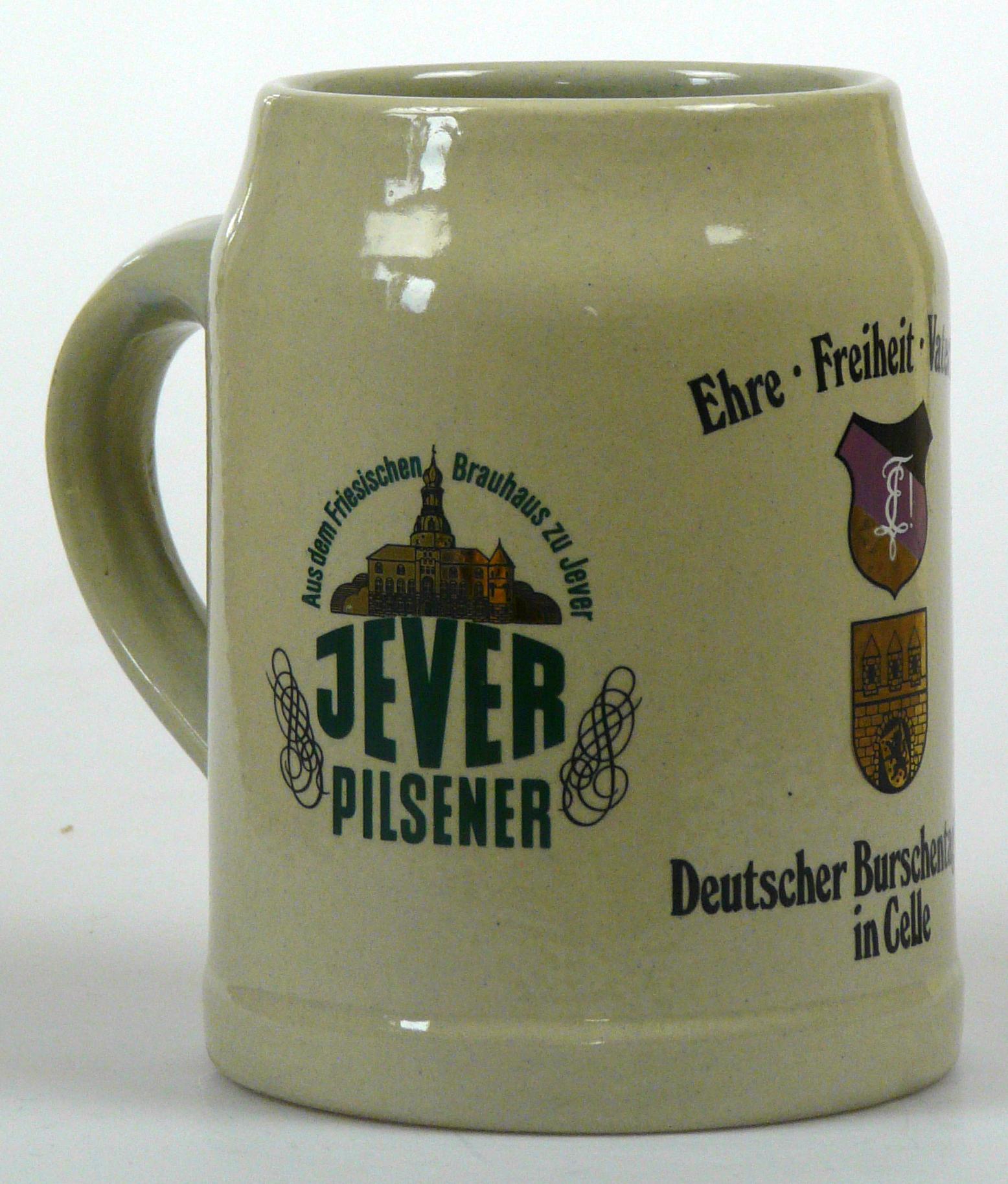 Attribut Wert Alter (min.) Alter (max.) Identifikation (Jever-Fan) ID I002084 / K0181 / B8 Typ Krug Attribute (Allgemein) Event Deutscher Burschentag Form Krug / Seidel Füllstrich geprägt > 0,5l////W Hersteller-Zeichen W Inhalt (l) 0,50 Logo Pilsener 6 Maße HxBxT (cm) 12,9x9,9x9,9 Material Steingut Motiv Rundliche Schrift Ort Celle > Celle > Landkreis Celle > Niedersachsen > Deutschland Sorte Pilsener Attribute (Zeitstempel) Eigene 19800000 1980 1980